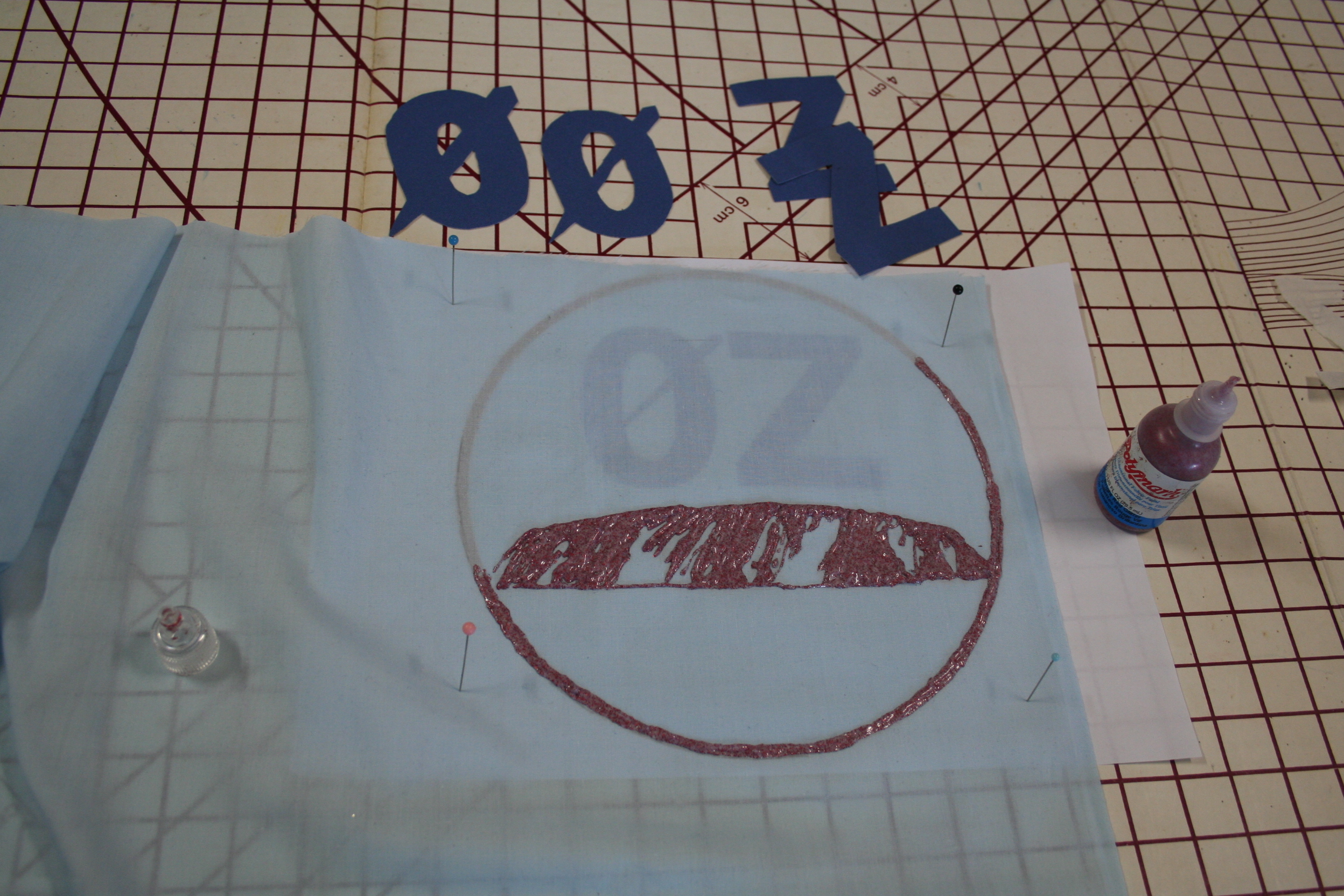 In this set i made two patches, one for a friend who likes sparkles. i have coloured in the red ularu with Red Glitter PolyMark fabric paint.