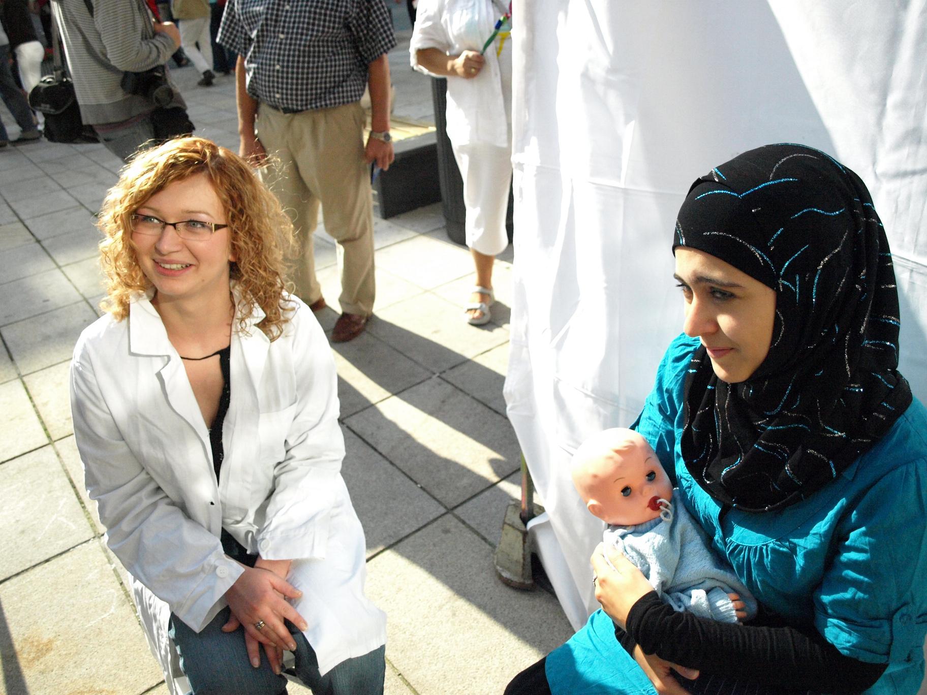 The doctor at the refugee center was supposed to be bored and tired, but the girl playing her part hjust couldn't stop smiling. In spite of that the scene came out pretty ok.