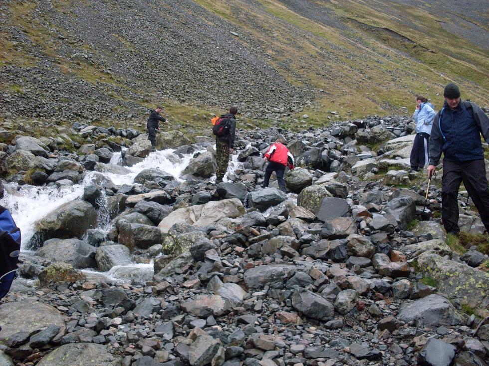 download file There were supposed to be stepping stones across the river, but due to the heavy rain, they were below the water level. We met a few other groups of people here, all trying to cross the river. It was just a case of wading out and hoping you didn't trip up. My feet were soaked after this, which made walking just that bit more uncomfortable. |