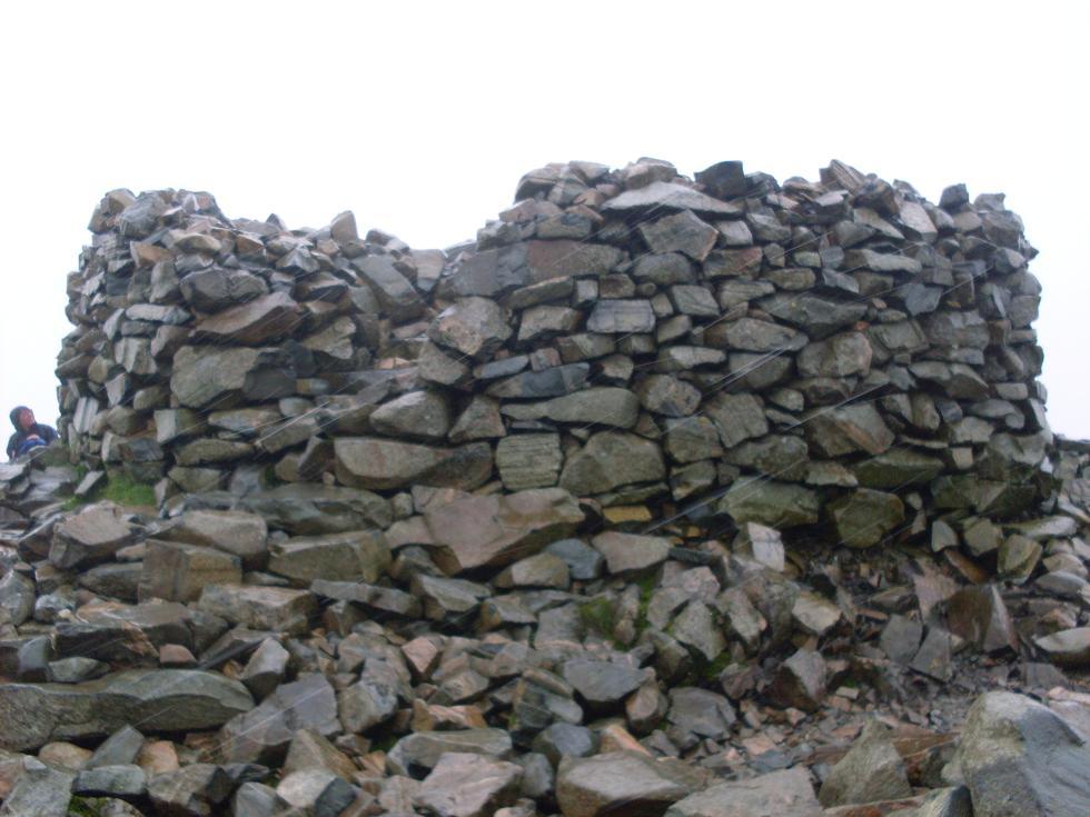 download file This pile of rocks marks the highest point in England. Notice how the wind has picked up at the top, and is causing almost horizontal rain to sweep across the mountain top. It wasn't the best of weather, and we certainly weren't going to stop for a picnic, as my original intention had been. |