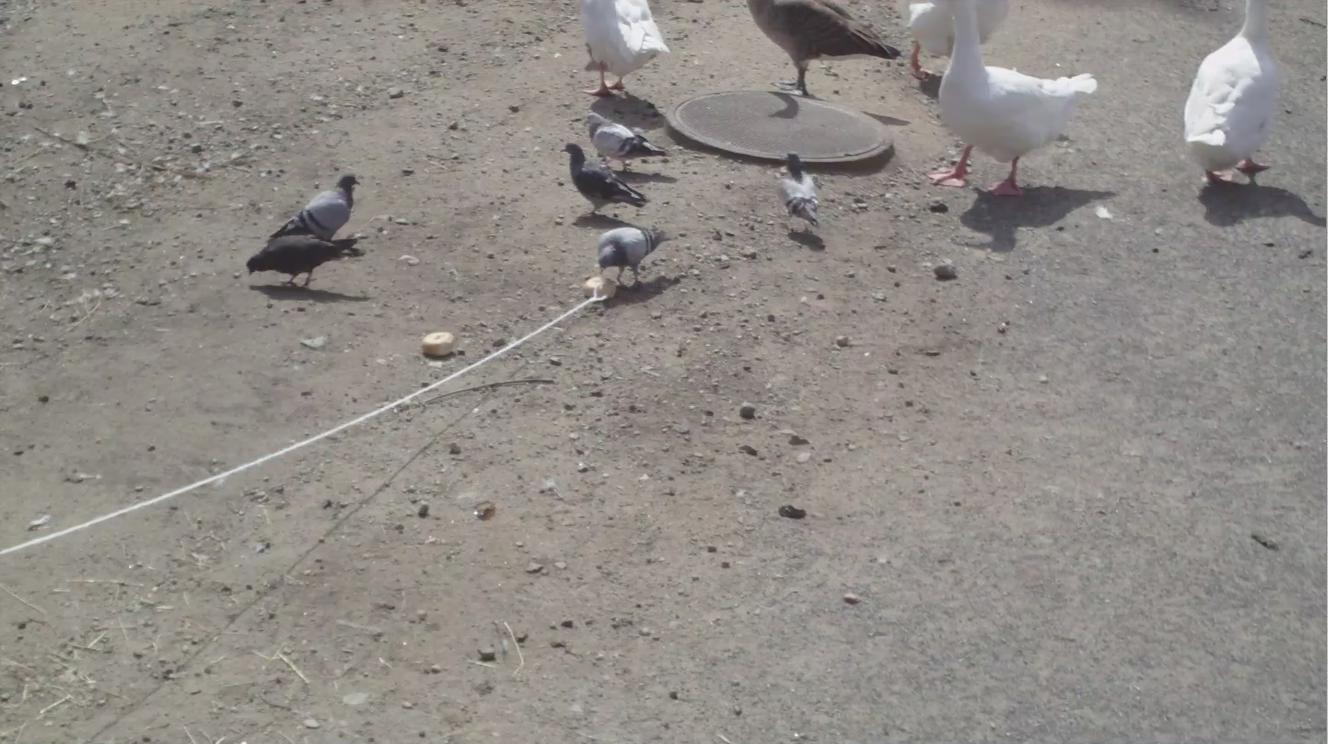 Pigeons are apparently more venturesome than geese when it comes to suspicious food sources. I was able to reel the bait in slowly, but didn't actually catch any pigeons.