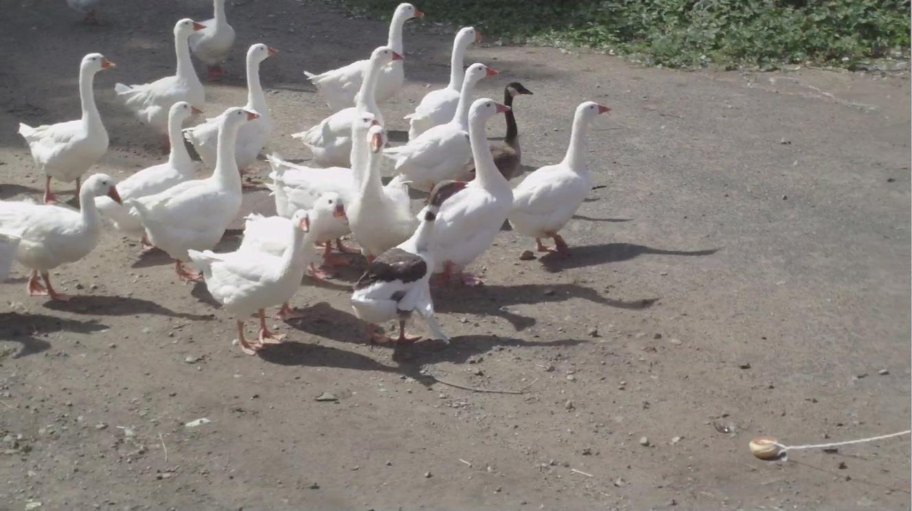 The geese were willing to come take a look, but were very nervous about my fishing pole and line.