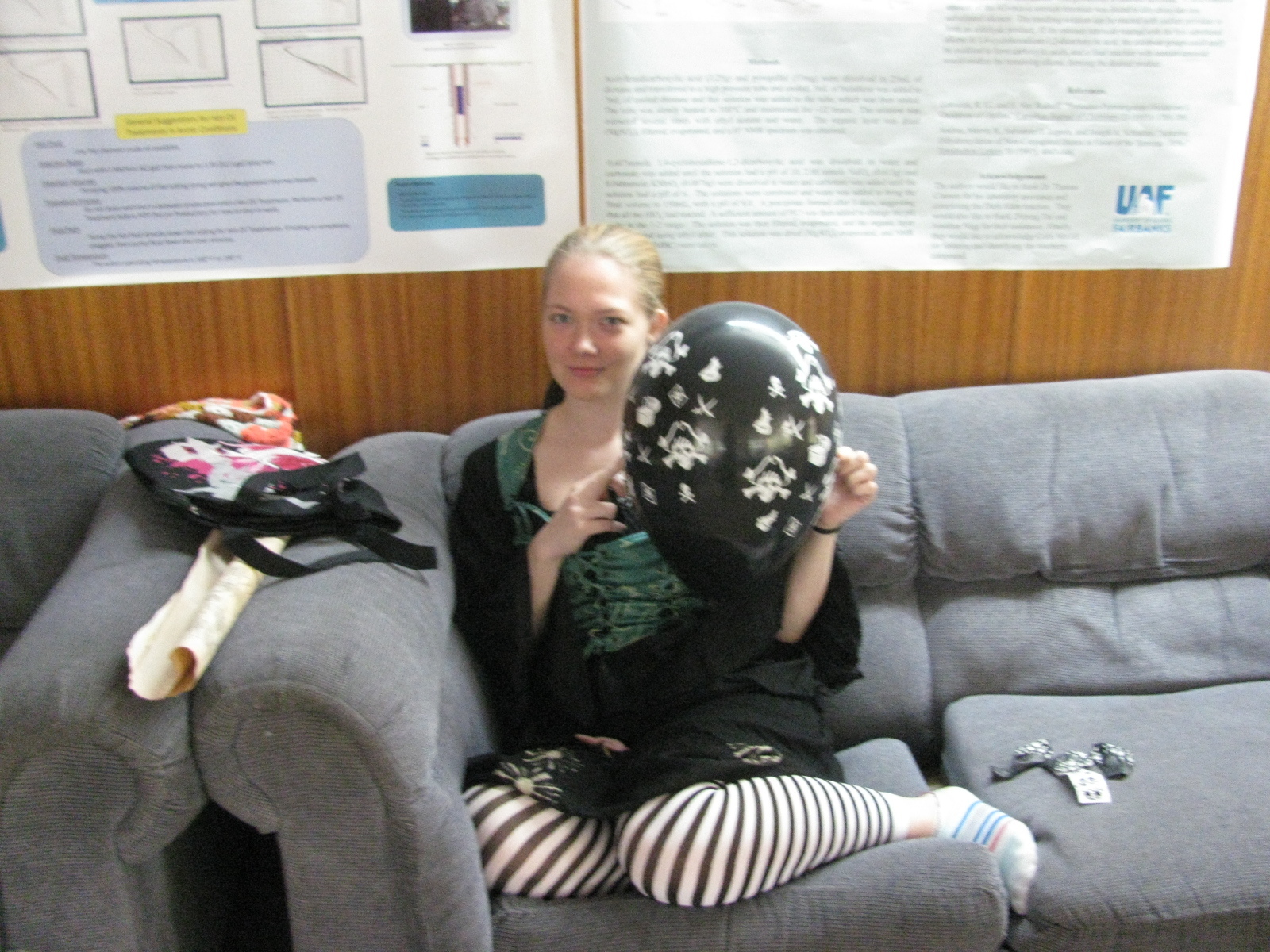 Borg: Part of our consolation prize was some pirate balloons, tattoos and stickers. Plus we got bandannas. Rin also, er, *acquired* a Jolly Roger toast stamper.