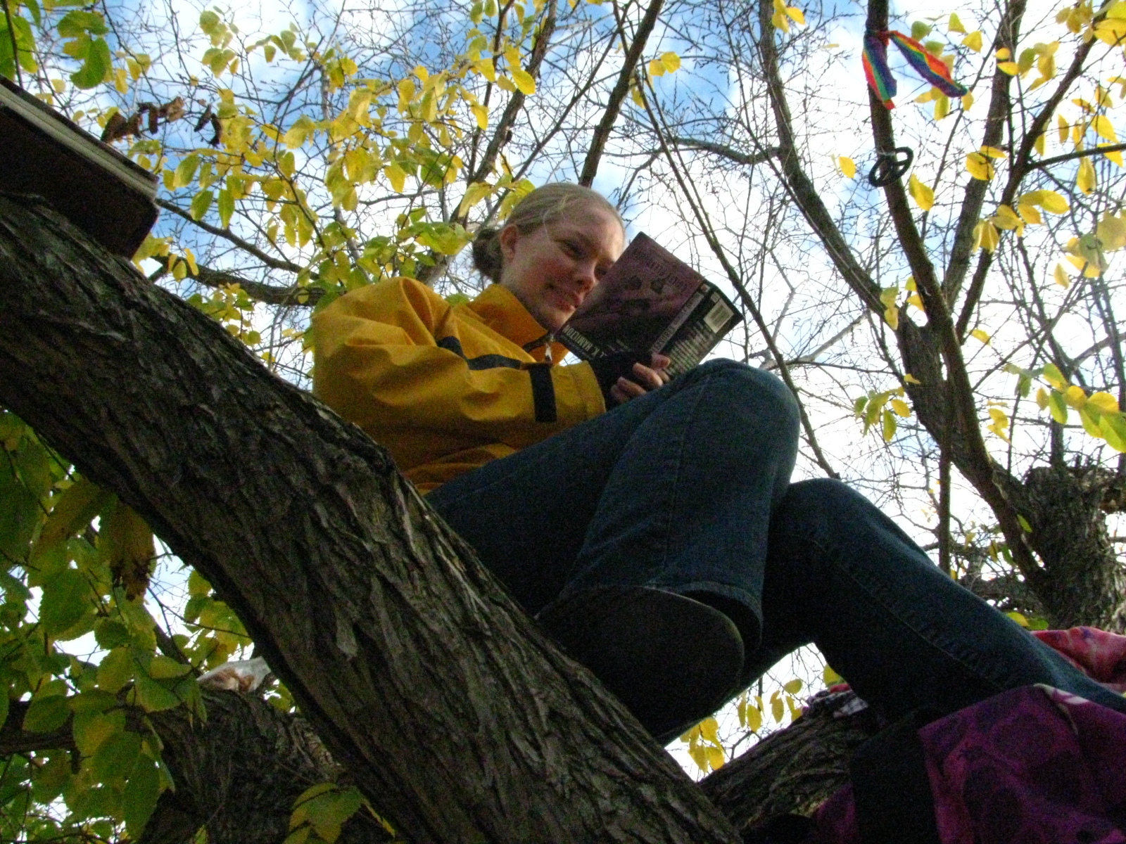 I posed for this later on when someone was around to take pictures. I did read a book though, Guilty Pleasures, by Laurell K Hamilton.