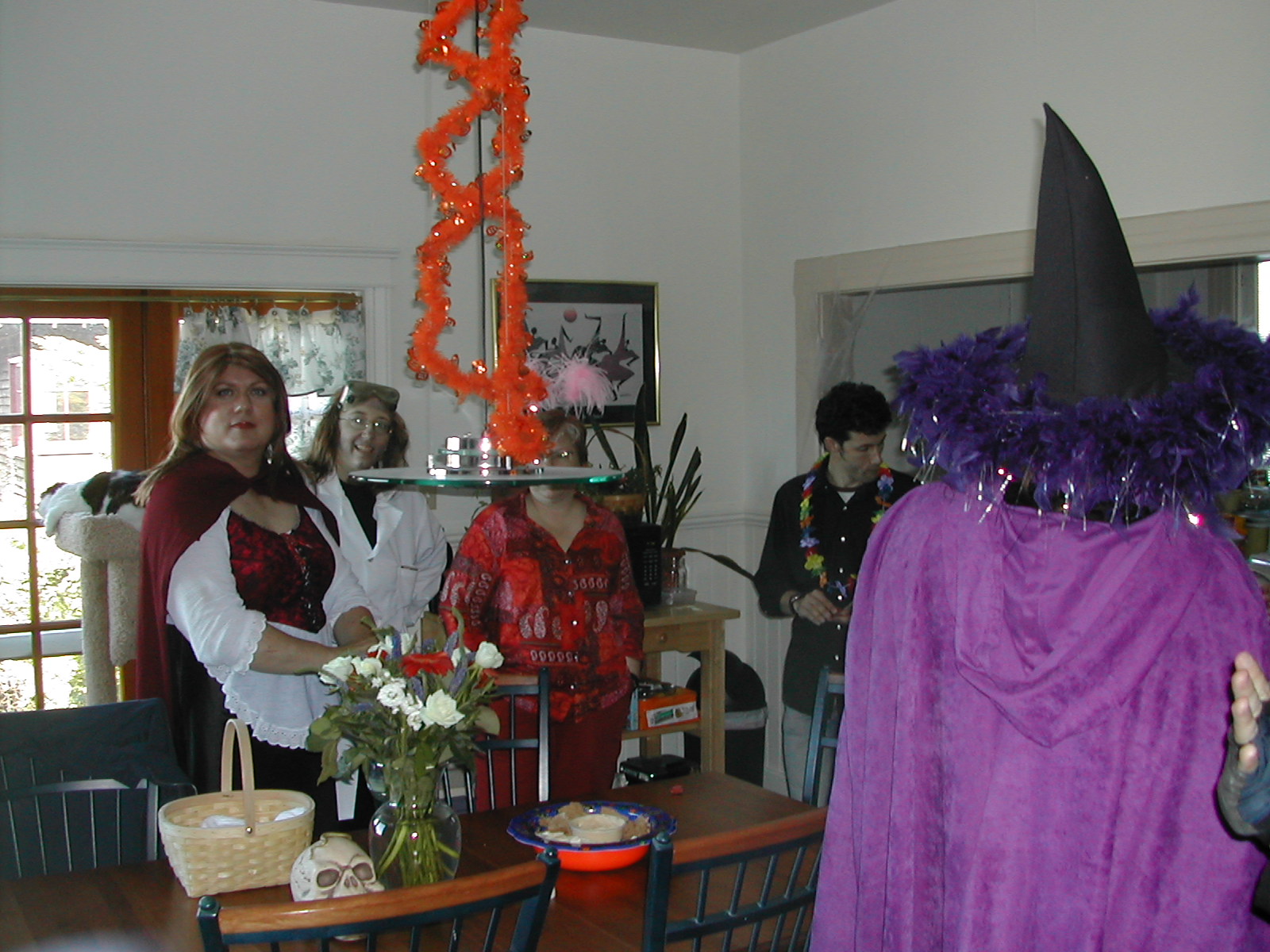 Party pic with Little Red Riding Hood, Mad Scientist, a Fraggle, a Bird of Paradise, and an Evil Wizard