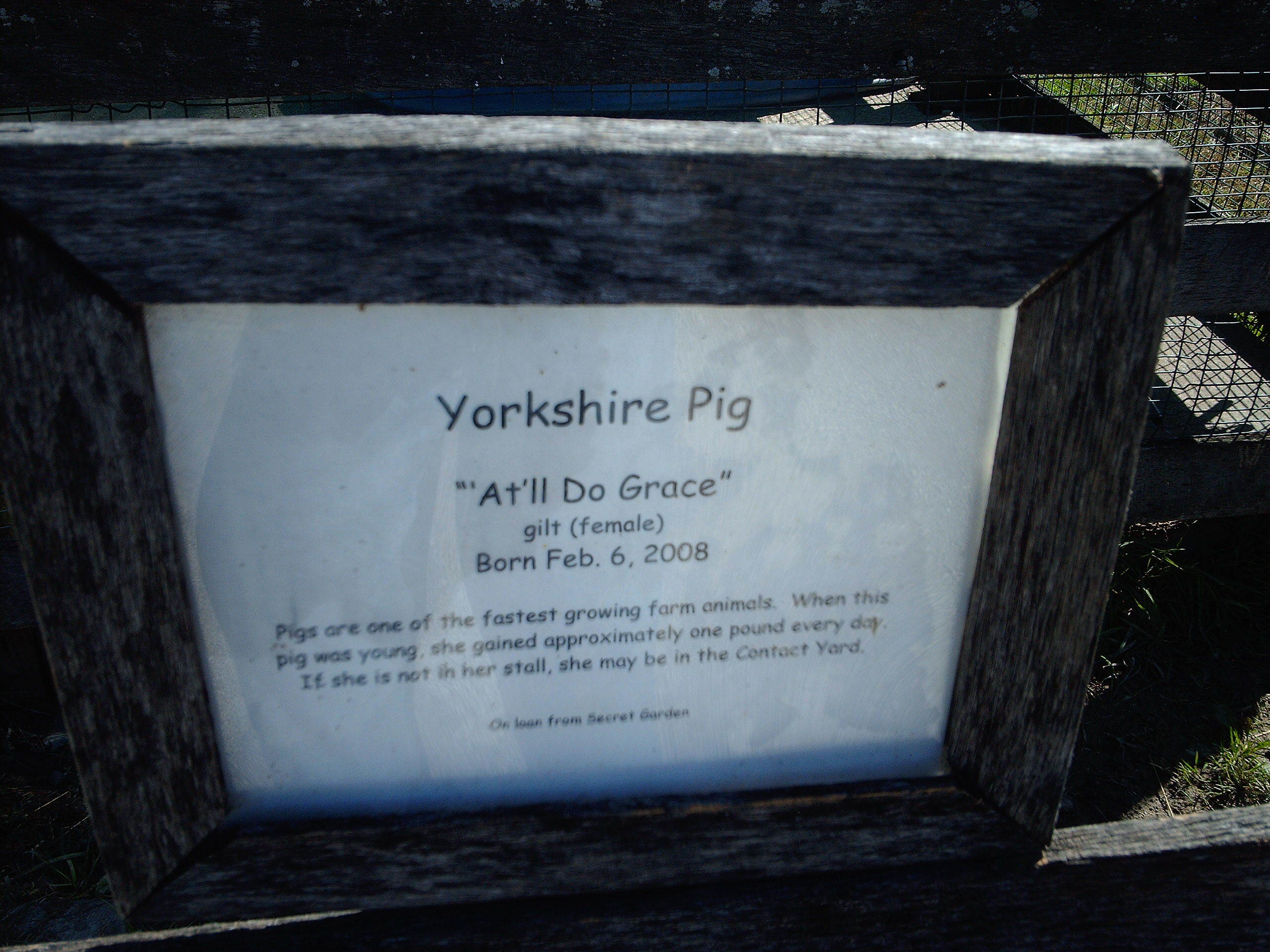 What a nice placard for our swine friend