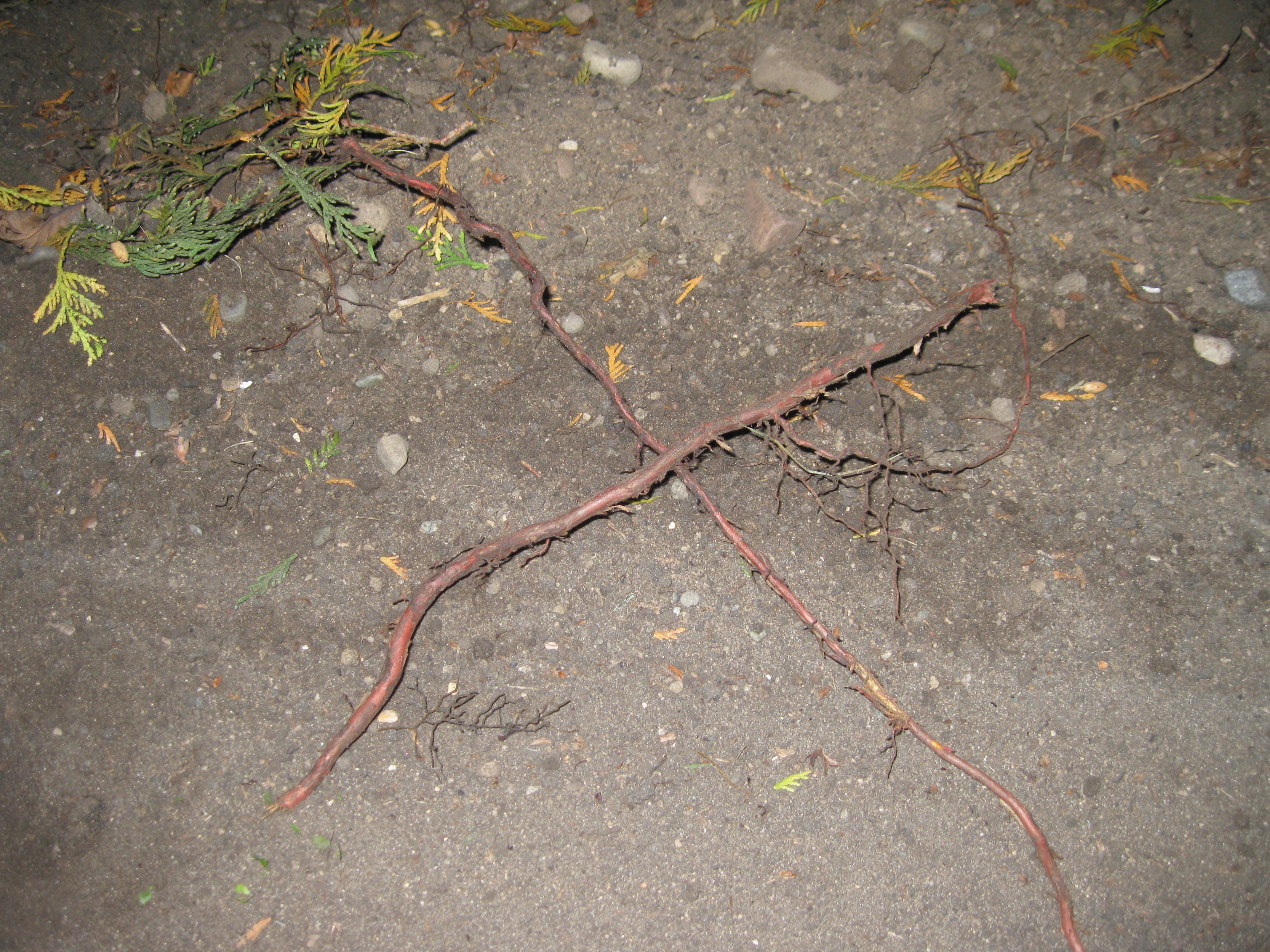 While digging I had pulled up two roots. I placed them in the shape of an X, to remind people that treasure can be in the most unexpected places.