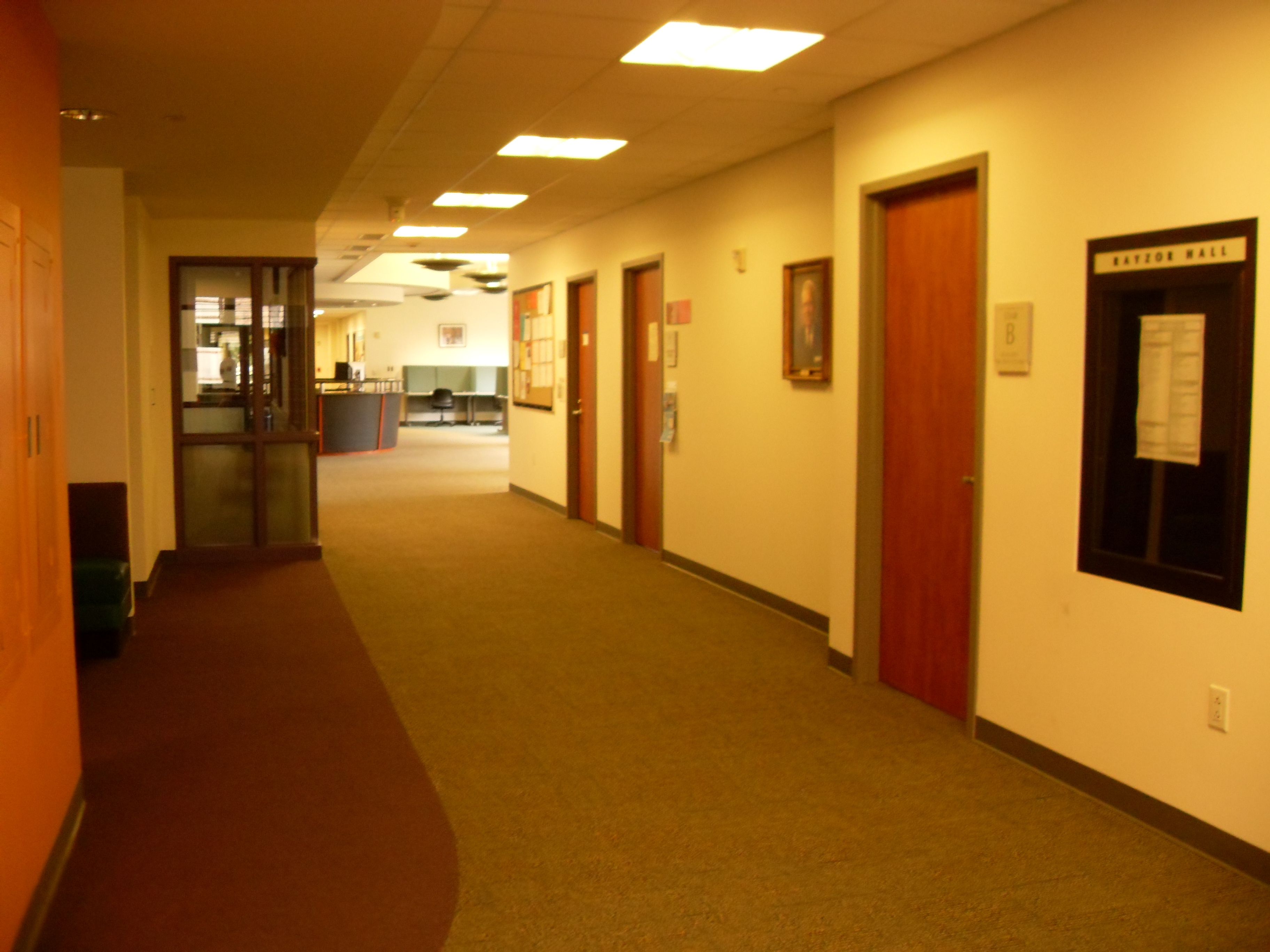The basement is instead behind the first door on the right in this photograph. It is locked. "Stair B", says the sign. After discovering the locked door, I decide to brave the cold outside.