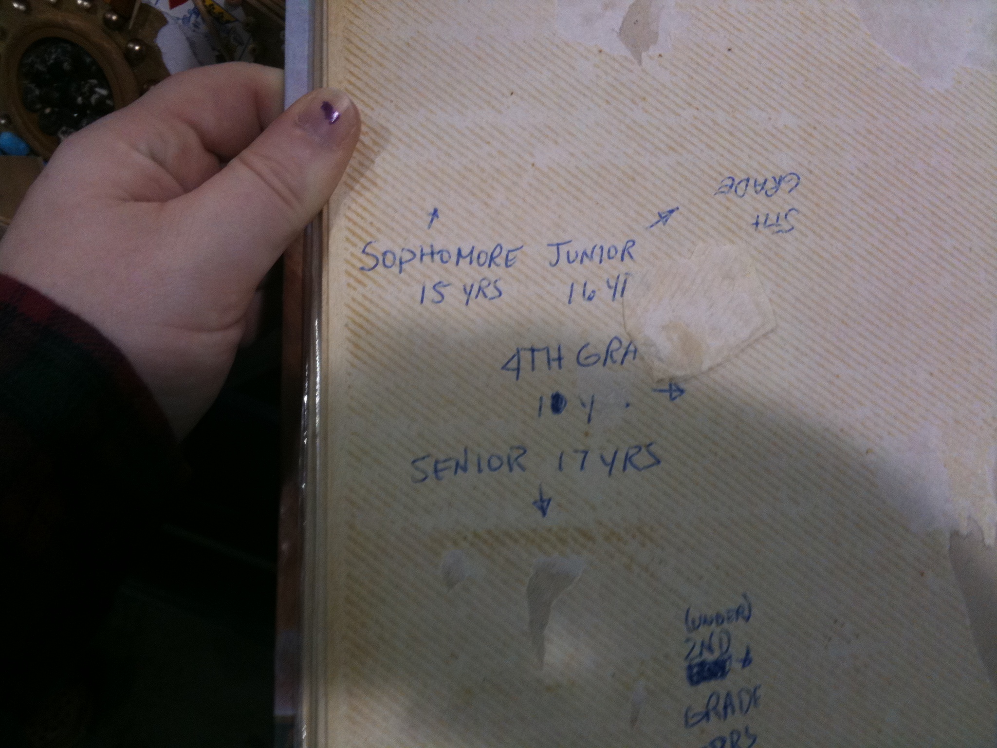 The previous owner had taken out all the photos, but there were some captions left behind.