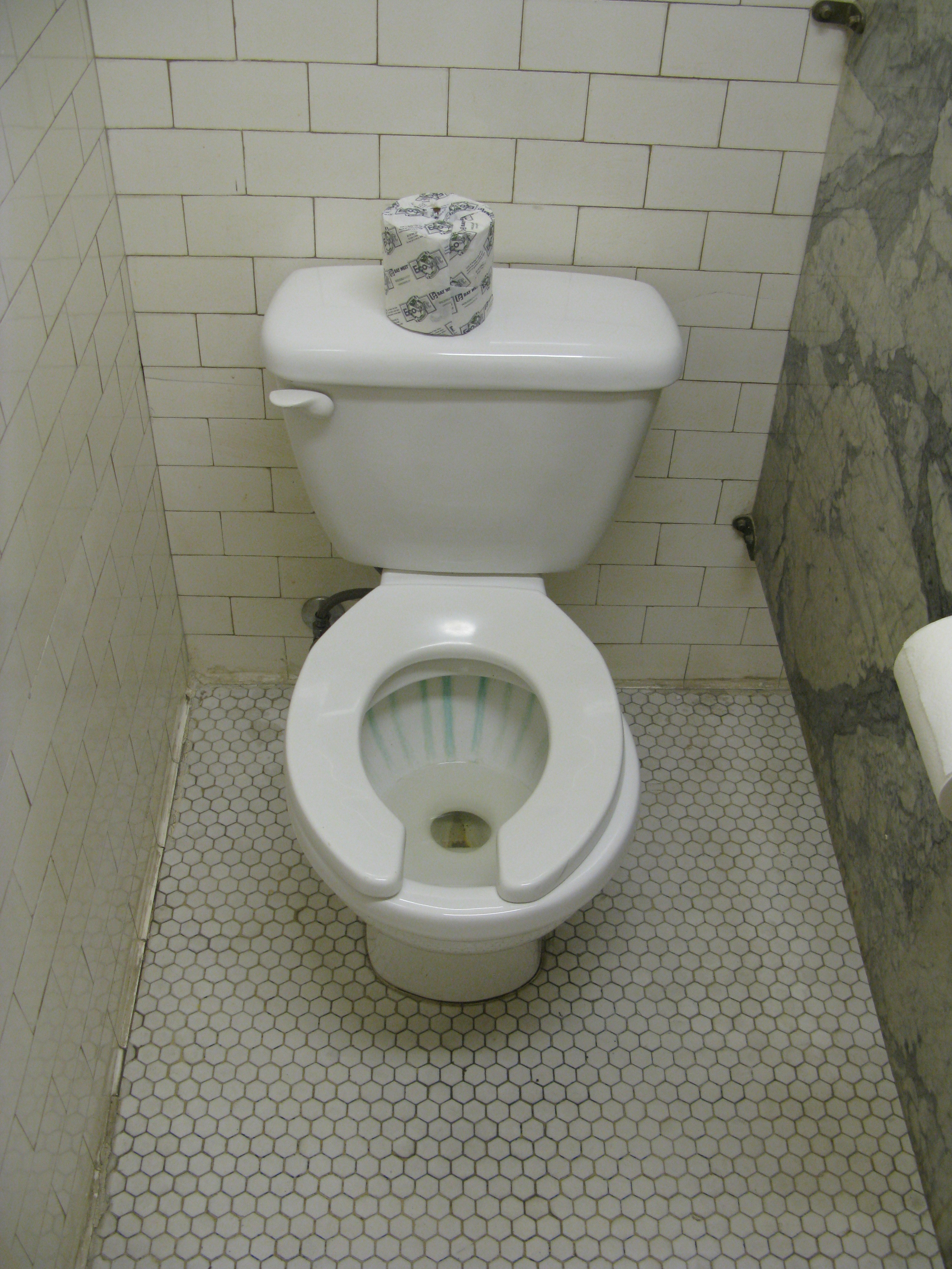download file I enjoy everything about the aesthetics of this bathroom, the blue lines in the bowl, the hexagonal floor tiles, the hard marble divider, the brick patterned white wall tiles. None of it matches anything else in there, but I find it appealing. |