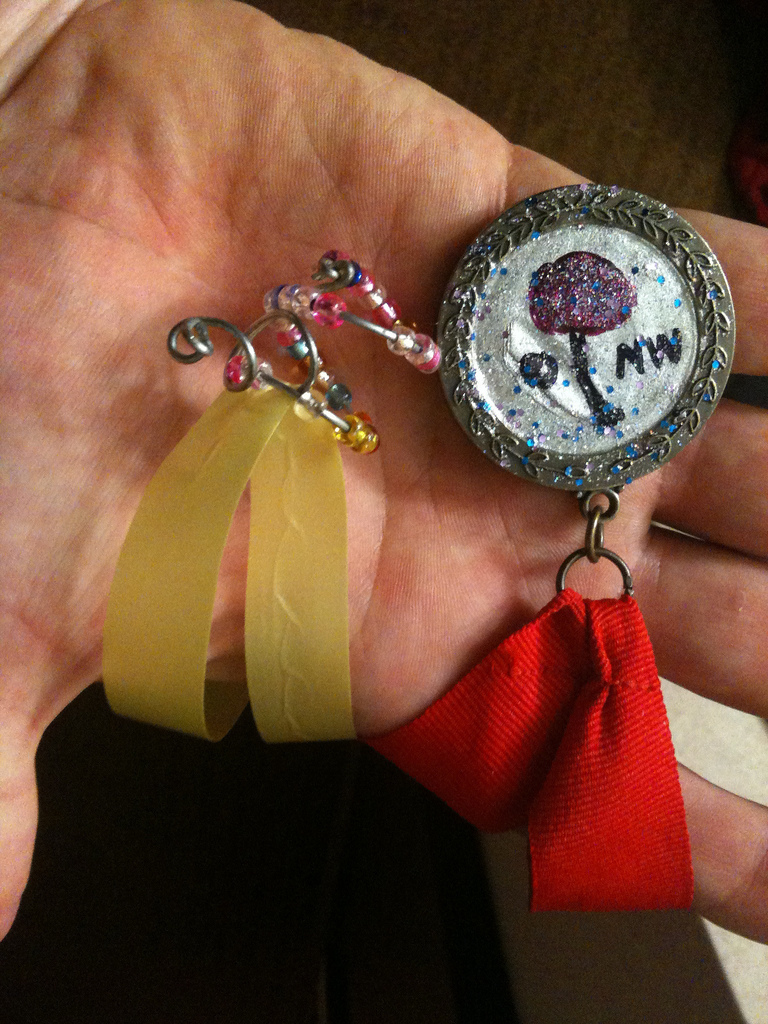 The First pair to finish got these medals. They didn't have the most names, but they survived with theirs intact and they crossed the finish line first.