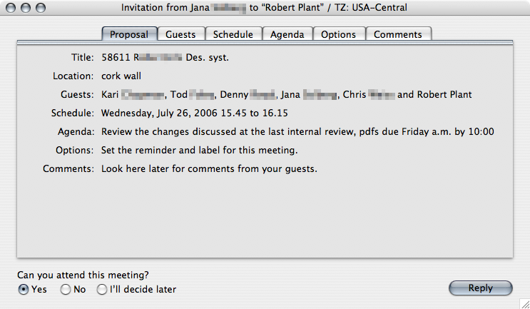 This was a real meeting that Jana invited him to. We believe it was a mistake as another "Rob" works here. Whoops.