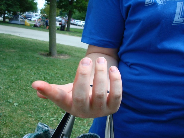 first volunteer got bloodied helping us!