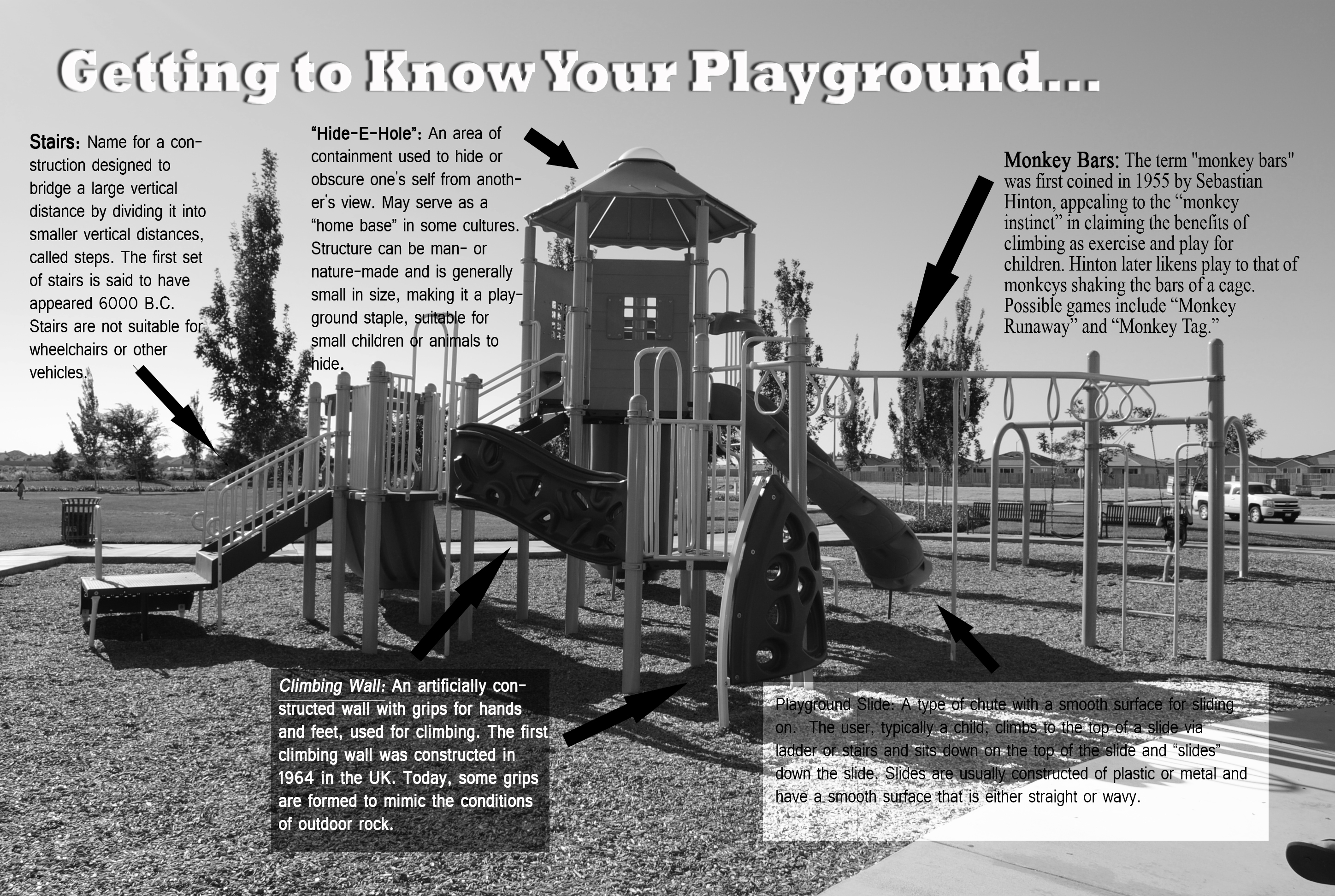 Little descriptions of each section. We forgot the swings in the background. Oh well. They'll have to just figure it out I suppose. The picture is of the actual playground we posted the info.