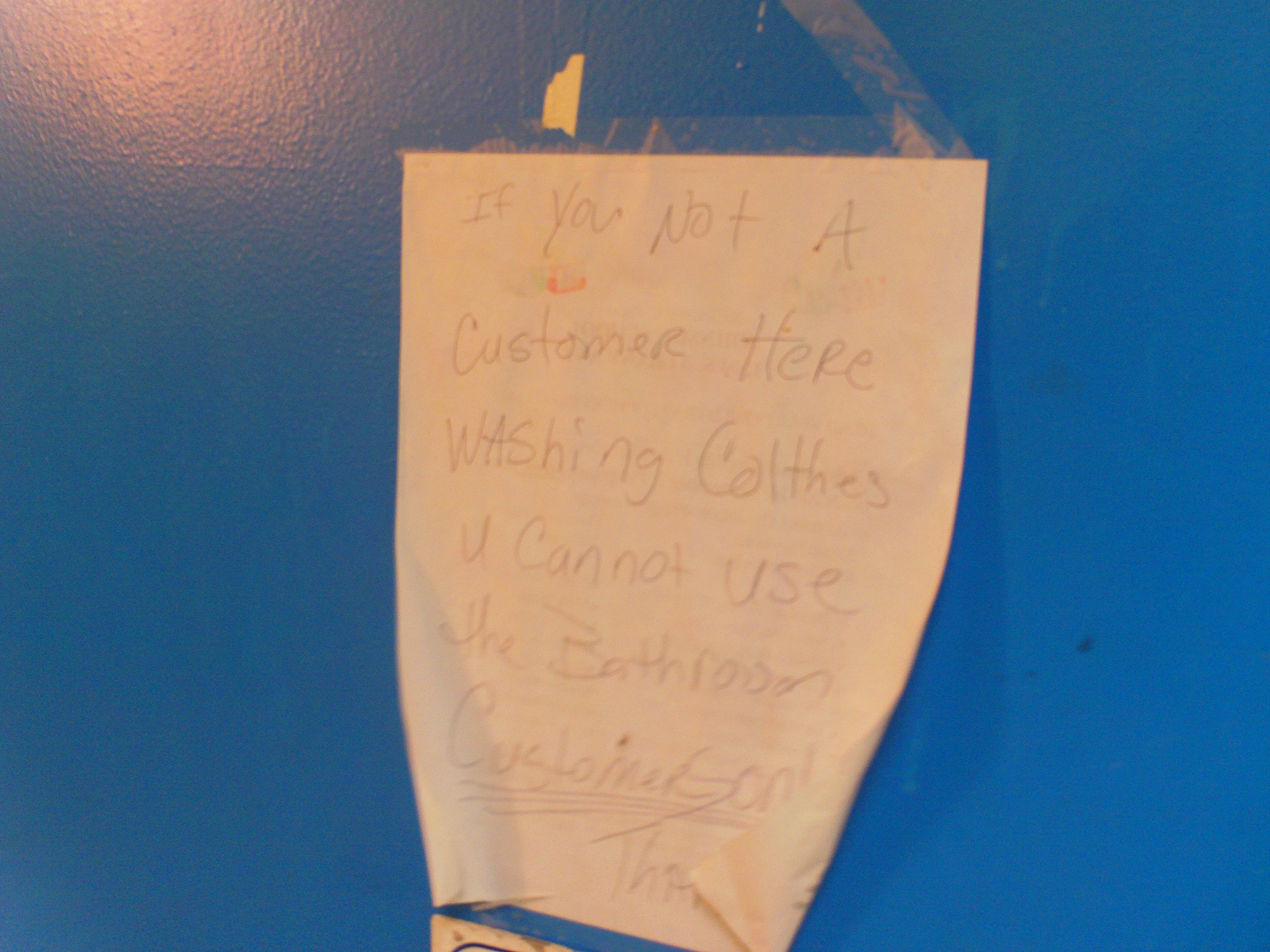 If You Not A Customer Here WAShing Colthes U Cannot use the Bathroom. Customers only. Thanks