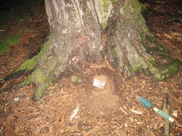 the box was right where Eglantine said it would be. i felt very illicit digging in a public park in full view of people and their dogs, but no one raised a fuss.