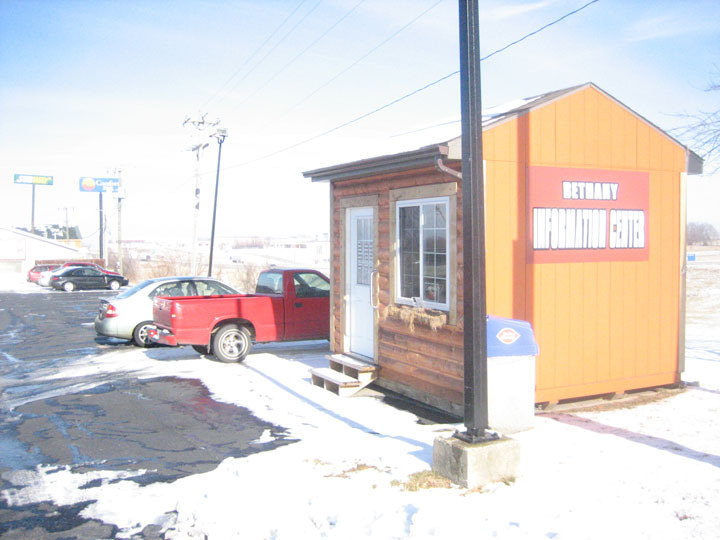 This tourist info hut was advertised on the freeway, but it was just a little hut in the parking lot of an Arby's or something.