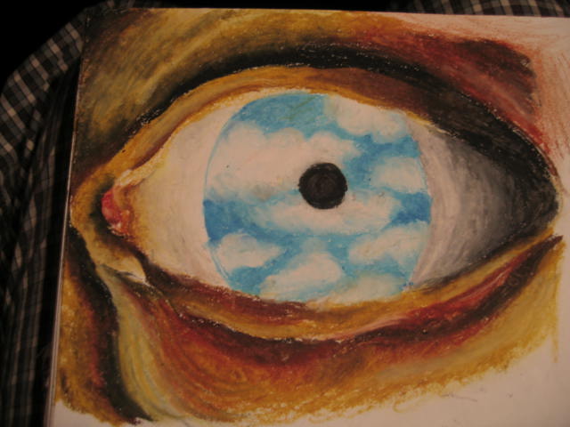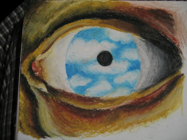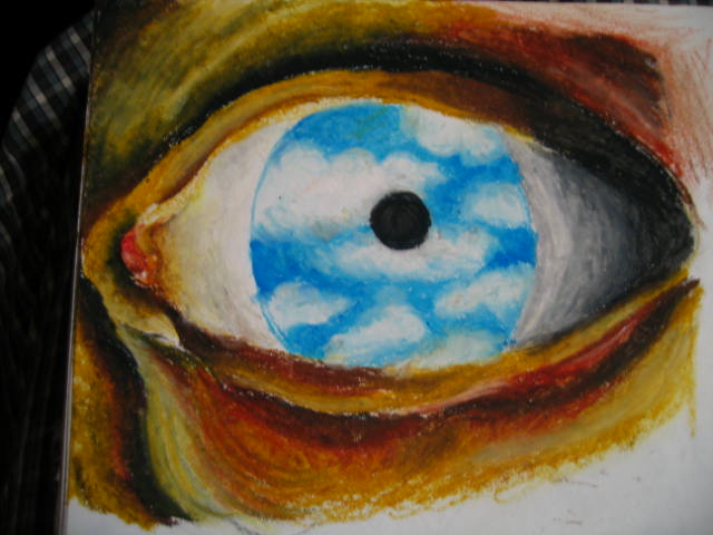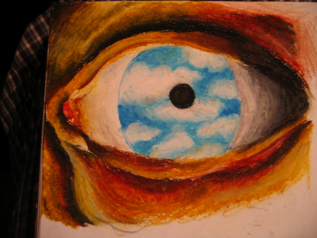 I searched Google Images for "greatest work of art" and this one painting jumped out at me. It's by Rene Magritte. I remember when we went to go see an exhibit on him in 4th grade at the SF MOMA. I did this with pastel, it doesn't have the closest resemblance ever, but it's okay.