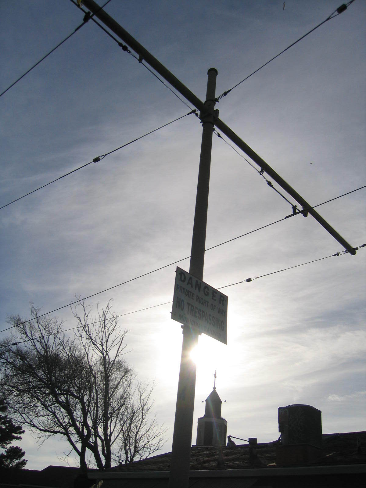 So this morning I got there early armed with duct tape and the sign, and I stuck it to the bottom of the pole that holds the electrical lines. There weren't many people around.