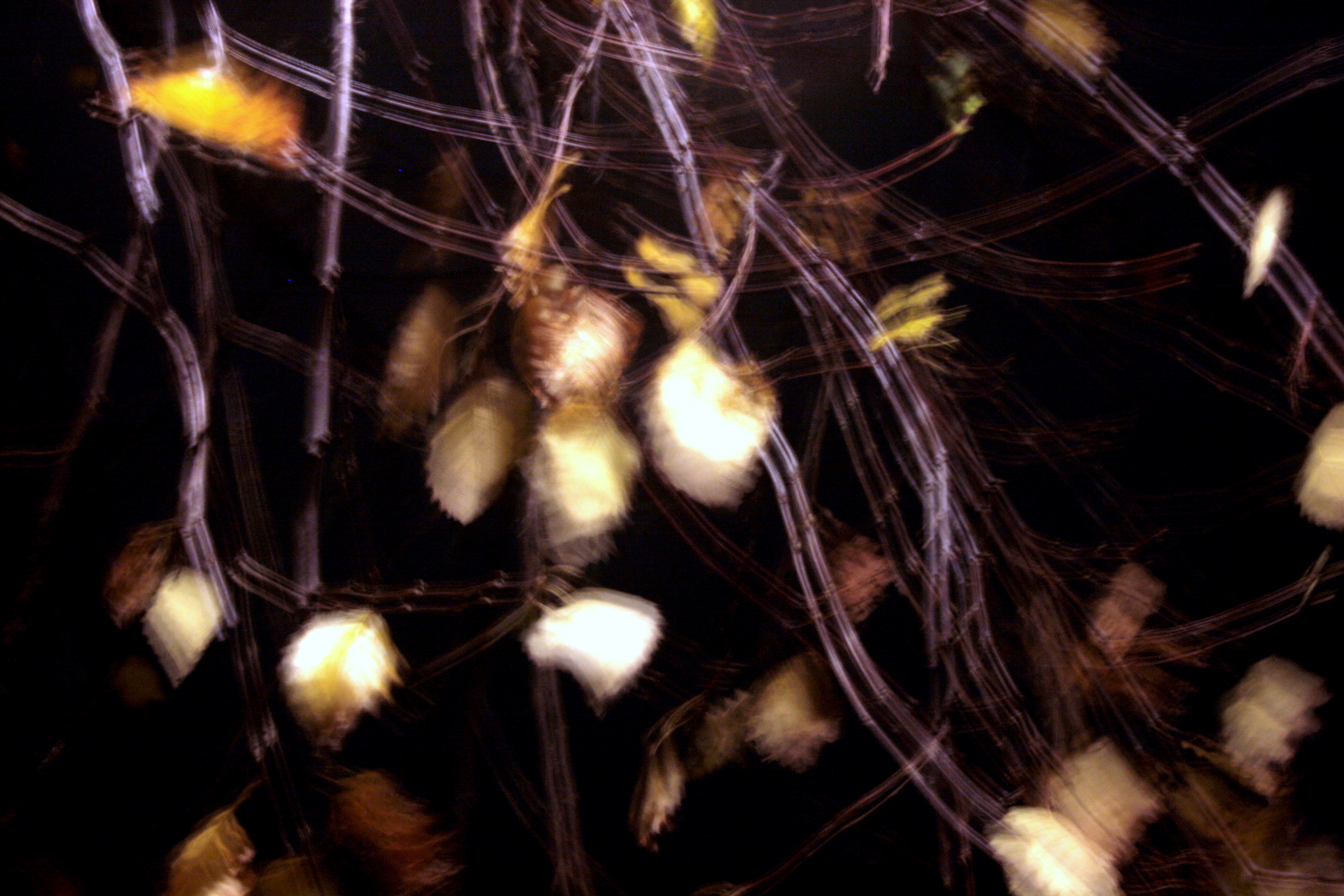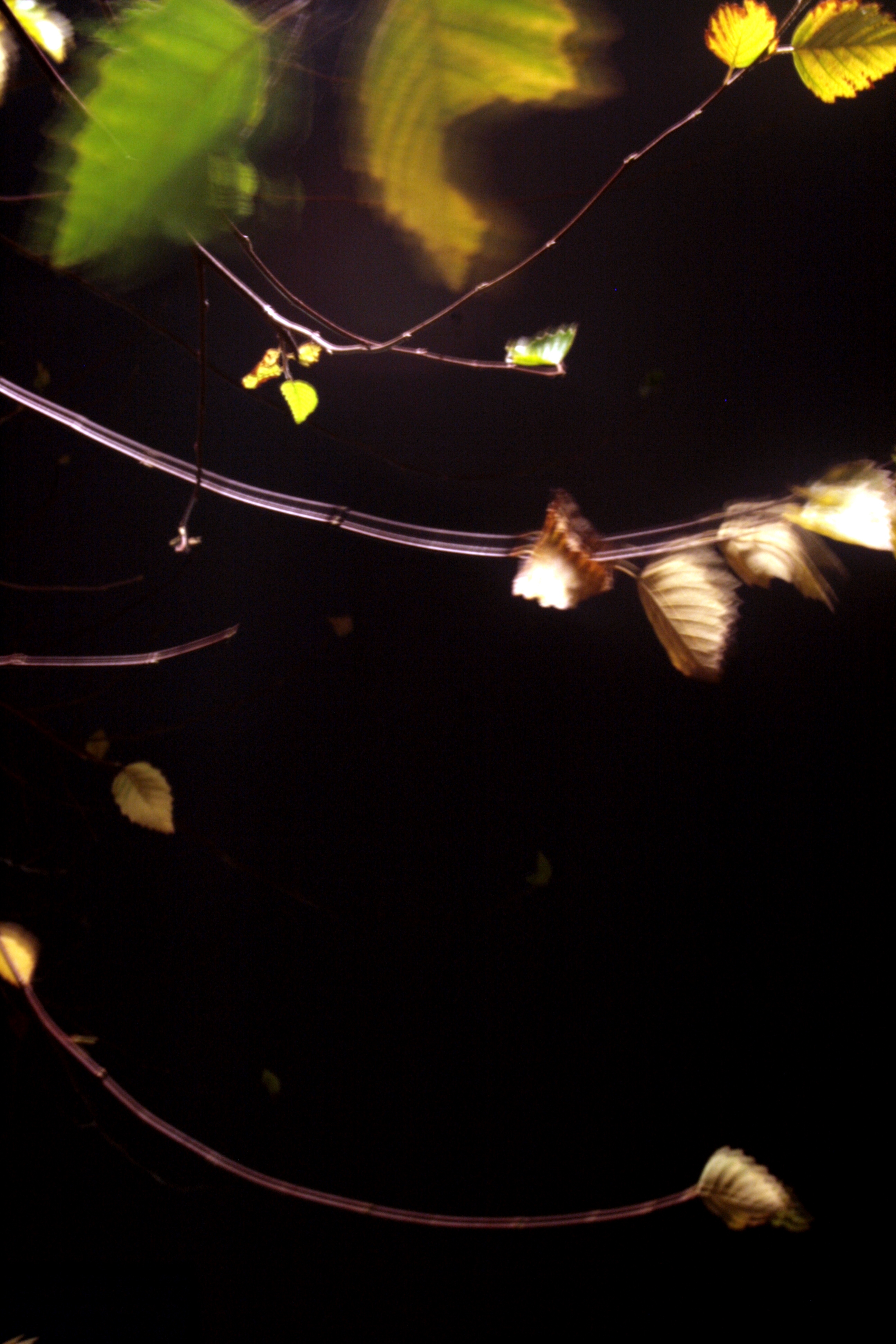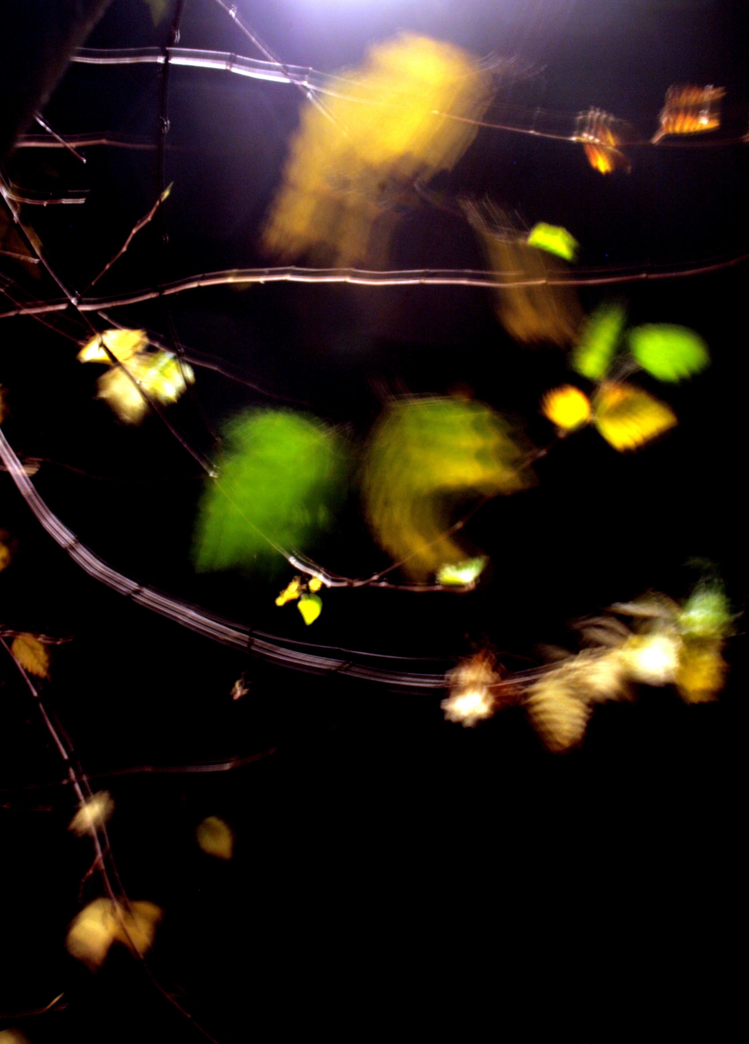 The idea was to take long exposure photographs showing tree branches moving back and forth. I picked a tree with skinny branches in the courtyard of our residential unit. I was hoping that having a high F stop and shooting the leaves moving against the solid background of the buildings would make the blur stand out more versus the stationary buildings, but that approach sort of failed and the best pictures I got were against the black sky.