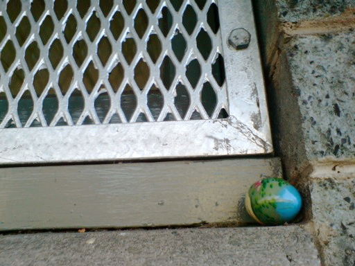 Such a pretty egg, tucked away in a dirty hole. Probably housing a family of rats. (I like rats. They bite.)