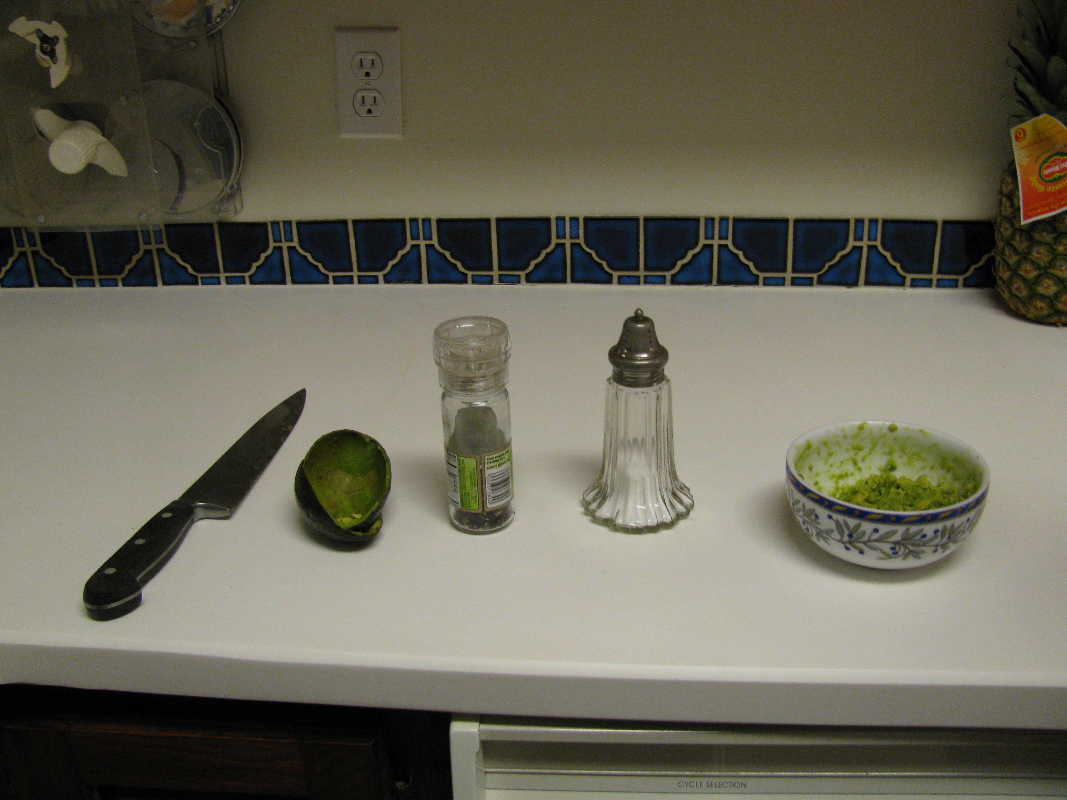 It's a little harder for me to give justification of why I don't like the avocado. I can never pick out just what it is, but when I bite into a piece of avocado, it triggers my gag reflex. There must be some component in the avocado which my body thinks is poisonous. I don't exactly hate the taste of avocado. When it is mixed in with a delicious Sopa de Tortilla, I don't mind its presence. But I have never been able to eat avocado by itself, or foods with large quantities of guacamole in them. This can present a problem on the occasion that my order is mixed-up at a taqueria. And next year, I will be living with a host family in Ecuador, and I don't want to offend them by having trouble with any of the food they serve me. Especially in those first few months when I won't yet be facile with Spanish. To avoid those delicate negotiations required to trade/mooch/give away food, I want to overcome my aversion to avocado. This task shall be the most direct of many attempts to acclimate myself to my dreaded nemesis.