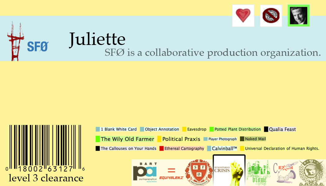 I liked the idea of putting a clearance level equal to my game level, so there's that, and I thought that with the barcode, I might be able to bluff my way into somewhere where you'd normally have to scan to get in! Although if actually scanned, they scanner-user will discover only that I am worth a mere $6.76. Here's the thing I used to generate the barcode using my sex, age, height, weight, and nationality. I also included my completed tasks (from all eras, because I didn't look very impressive with just the ones from Everyday Life) and my groups in the upper right corner, both to fill space and look like I'm Part Of Something Important And You Should Let Me Past That Locked Door.