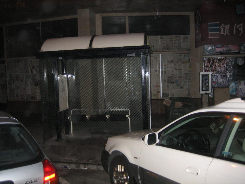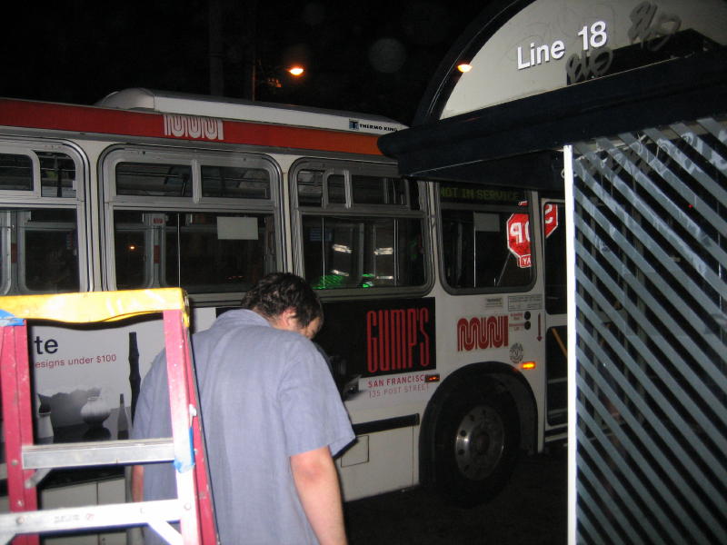 I began the long hunt for a suitable candidate for the bus stop conversion task. I ran around the city for hours taking measurements, examining the different MUNI structures, and brainstorming. As with many tasks, it must have been a strange sight, some weirdo standing on top of a ladder with measuring tape at 1 AM.