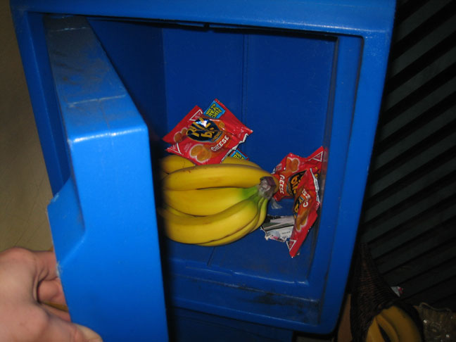 Everything is still there. In that 20 minutes or so, people were stopping their cars to take pictures. People have been slowly drinking the water, eating the bananas, etc. and someone had put in a fresh crop of new magazines. The response was better than we could have ever hoped.