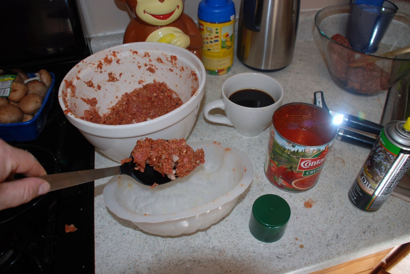 I figured I might make brain-replacement cuisine, much in the same fashion as Tofurkey and Surimi (fake crab). The idea is to bring Zombies softly off of their need for brains, and for this I created Zombie Meatloaf presented here step -by-step with recipe and pictures.