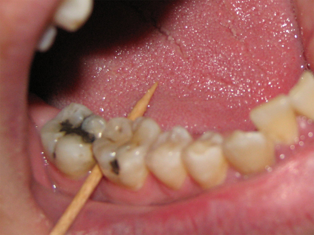 As a demonstration of scale, that is a standard size round toothpick inserted into the space between the back teeth. A degree in dentistry is not required to realize that is too much space.