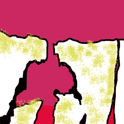 The red is the gumline, the pink is the interior of the mouth, the teeth and decay should be pretty obvious.