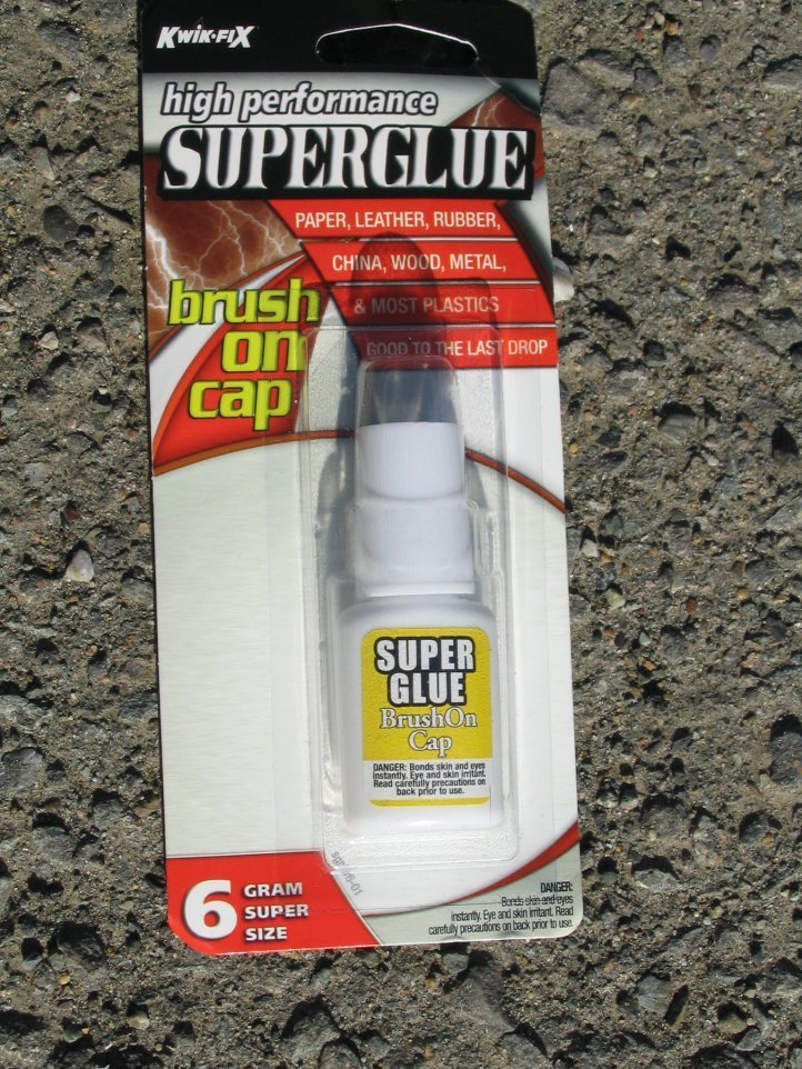 In fact, the receipt also did not say "super glue," even though the bottles do. The receipt said "Kwik Fix," a brand name which you can find in very small letters along the top of the cardboard package, yet which appears nowhere else on the product. That's a large part of why I decided to do this task in the first place.