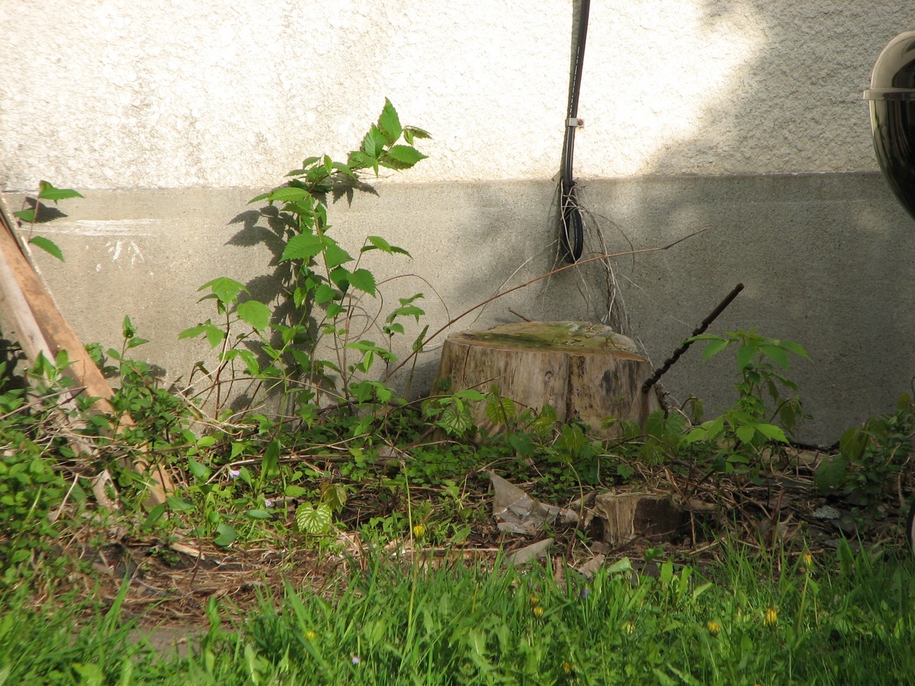 the one between those neighboring sheds? I trimmed and herbicided the CRAP out of that bastard in 2007. This year I'm skipping the poisons. What's the use? It just potentially exposes the groundwater to contamination, even when I use organically derived compounds. Ms. Disobedience of All Years doesn't appear to give a crap anyway.