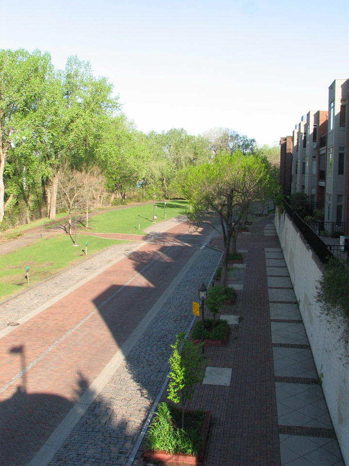 I actually went down the stairs to take this photo, but I put the annotation tag up at the top of the stairs. This is St. Anthony Main. Those are some condos on the right. There's great fun to be had down here...