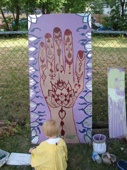 Then life intervened for a while, and the door project...incubated...with child rearing slowing down the painting completion, and Burning Man sapping the human resources of the Twin Cities crew. Burn Unit and Eleanorest kept the torch alive, painting a little along the way, and keeping the doors stored at their house.