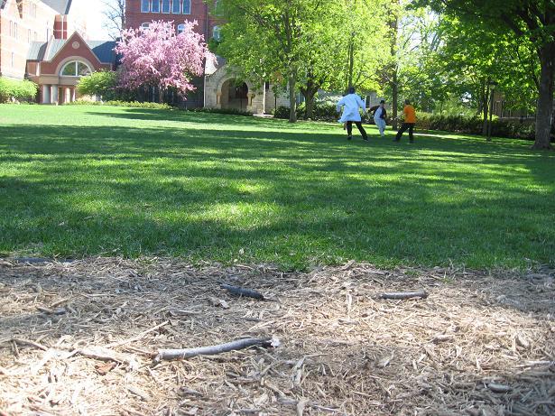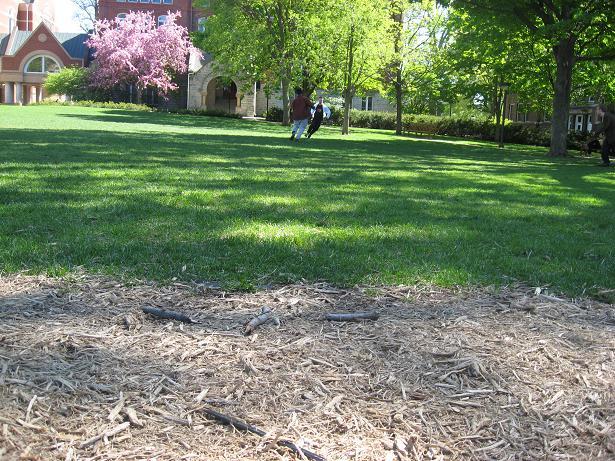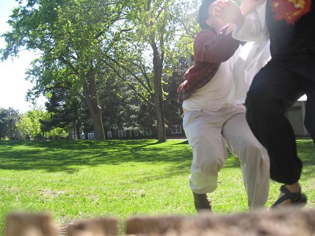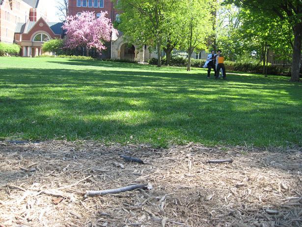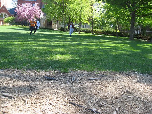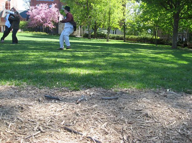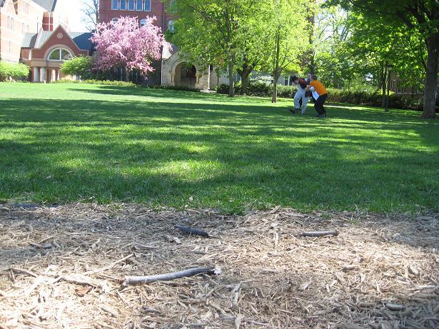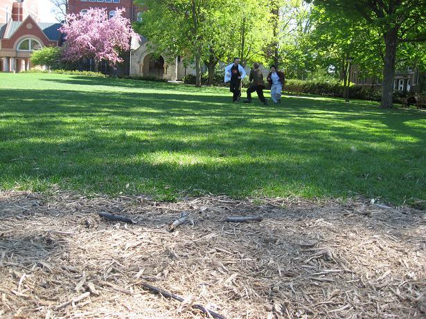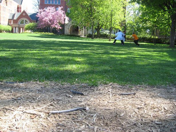 This course involved running up a hill to a tree and back, crossing a concrete sidewalk along the way. Only one run was attempted on this course, during which help im a bear lost balance on the sidewalk and fell on his face. Unfortunately, the camera also seemed to malfunction, and we got no pictures of this one abortive run. Having learned a valuable lesson about safety and the true meaning of friendship, we kept looking for appropriate courses, quickly settling on