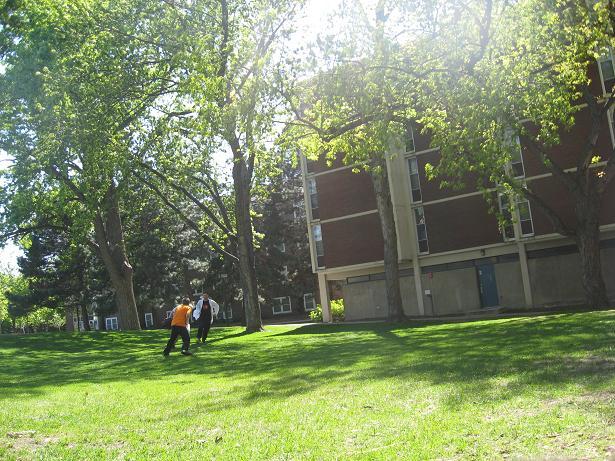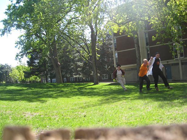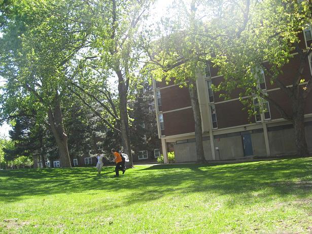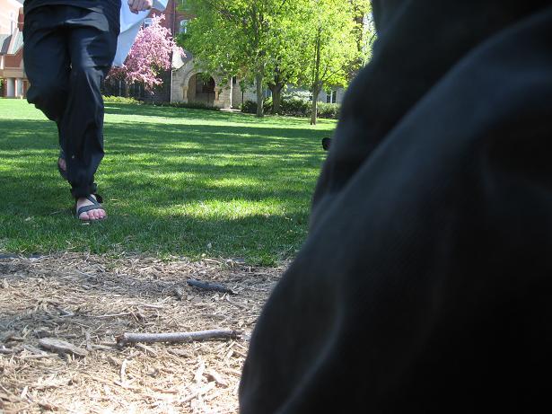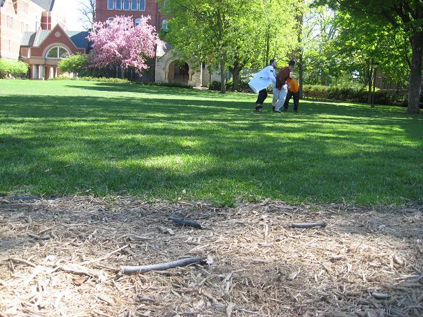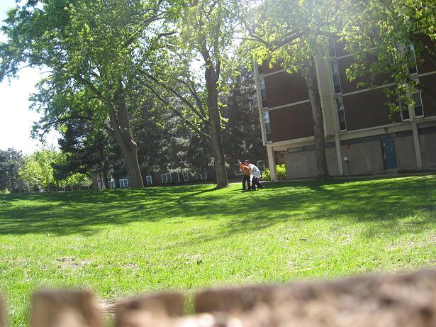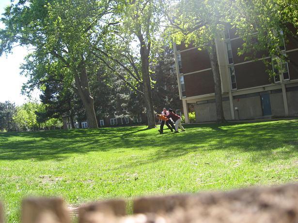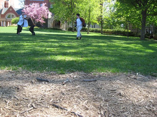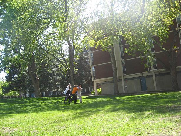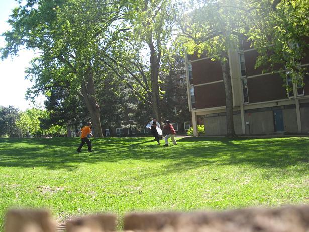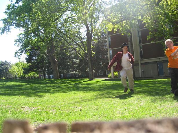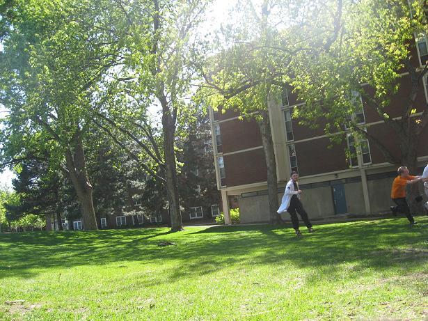 Having invented this game, we looked about the near-deserted campus of Macalester College for suitable places to play it.