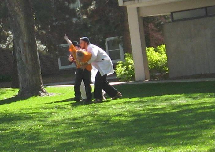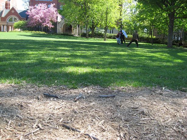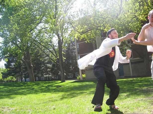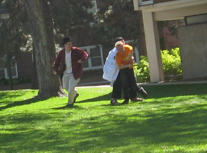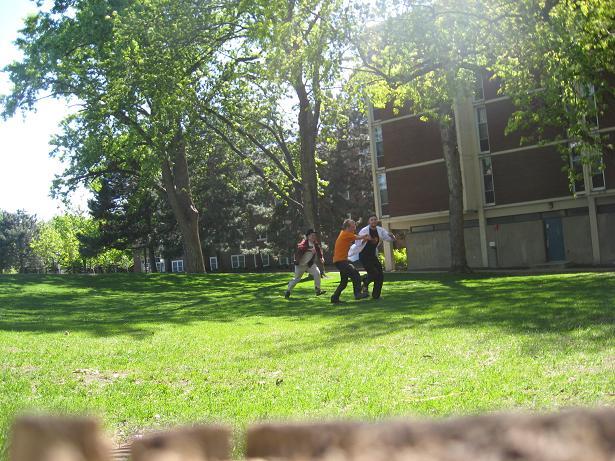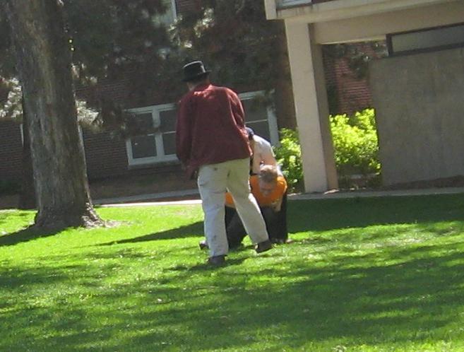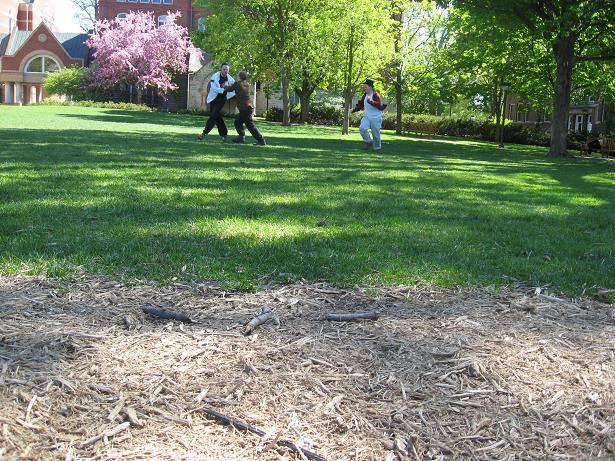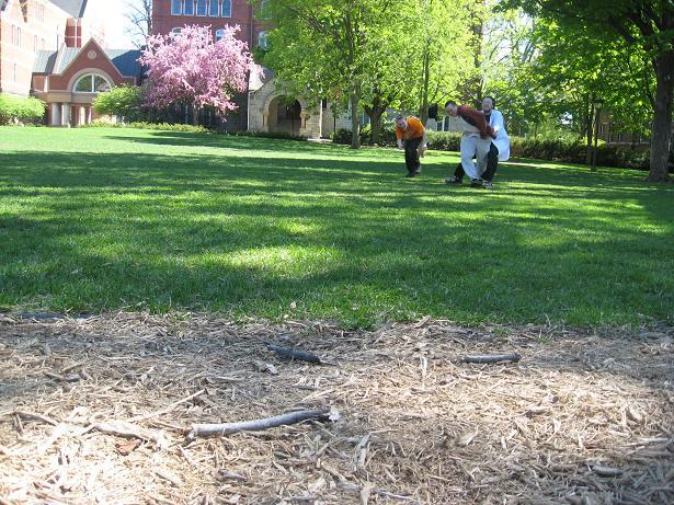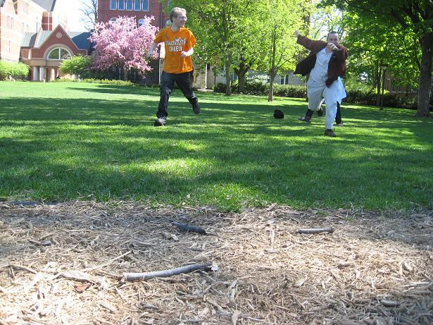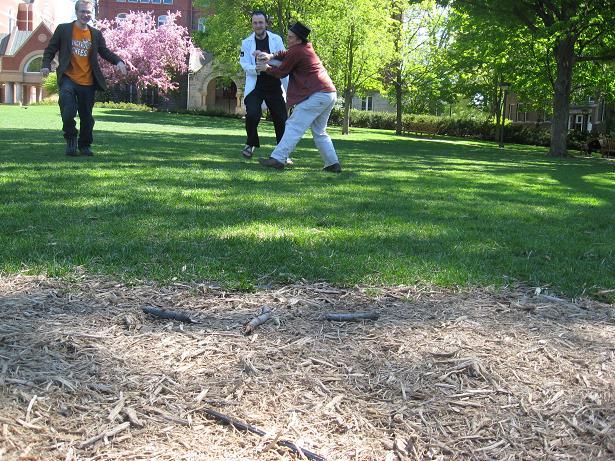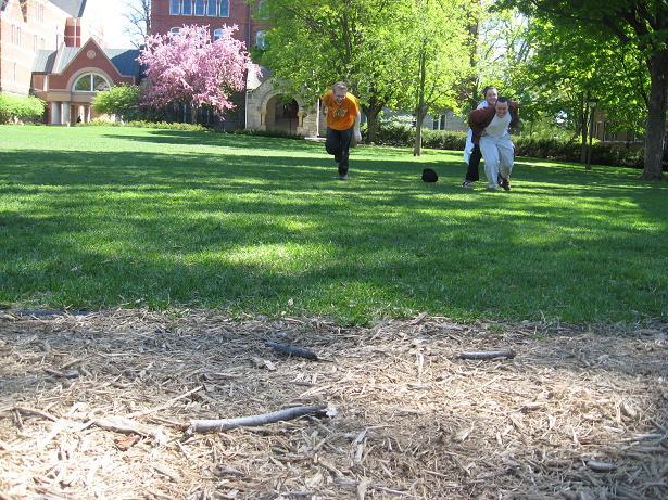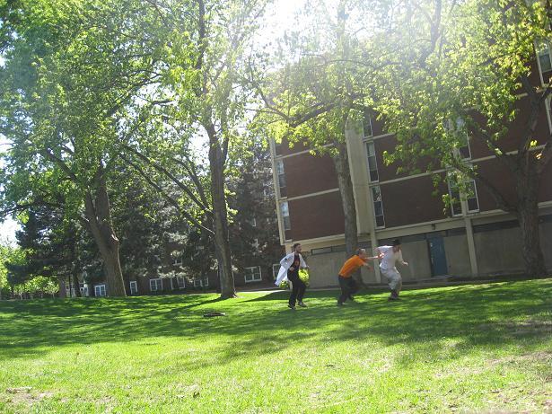 Having invented this game, we looked about the near-deserted campus of Macalester College for suitable places to play it.