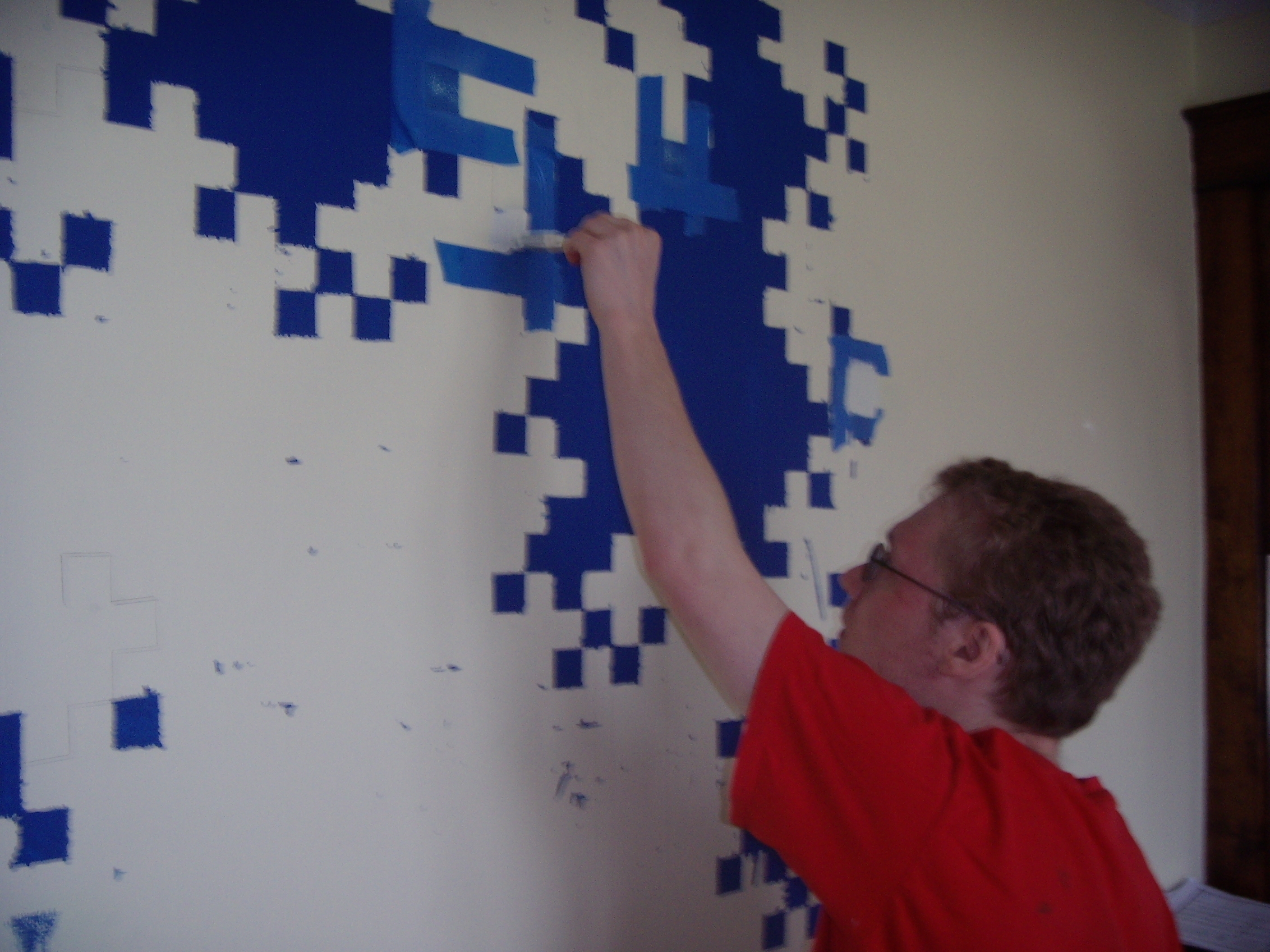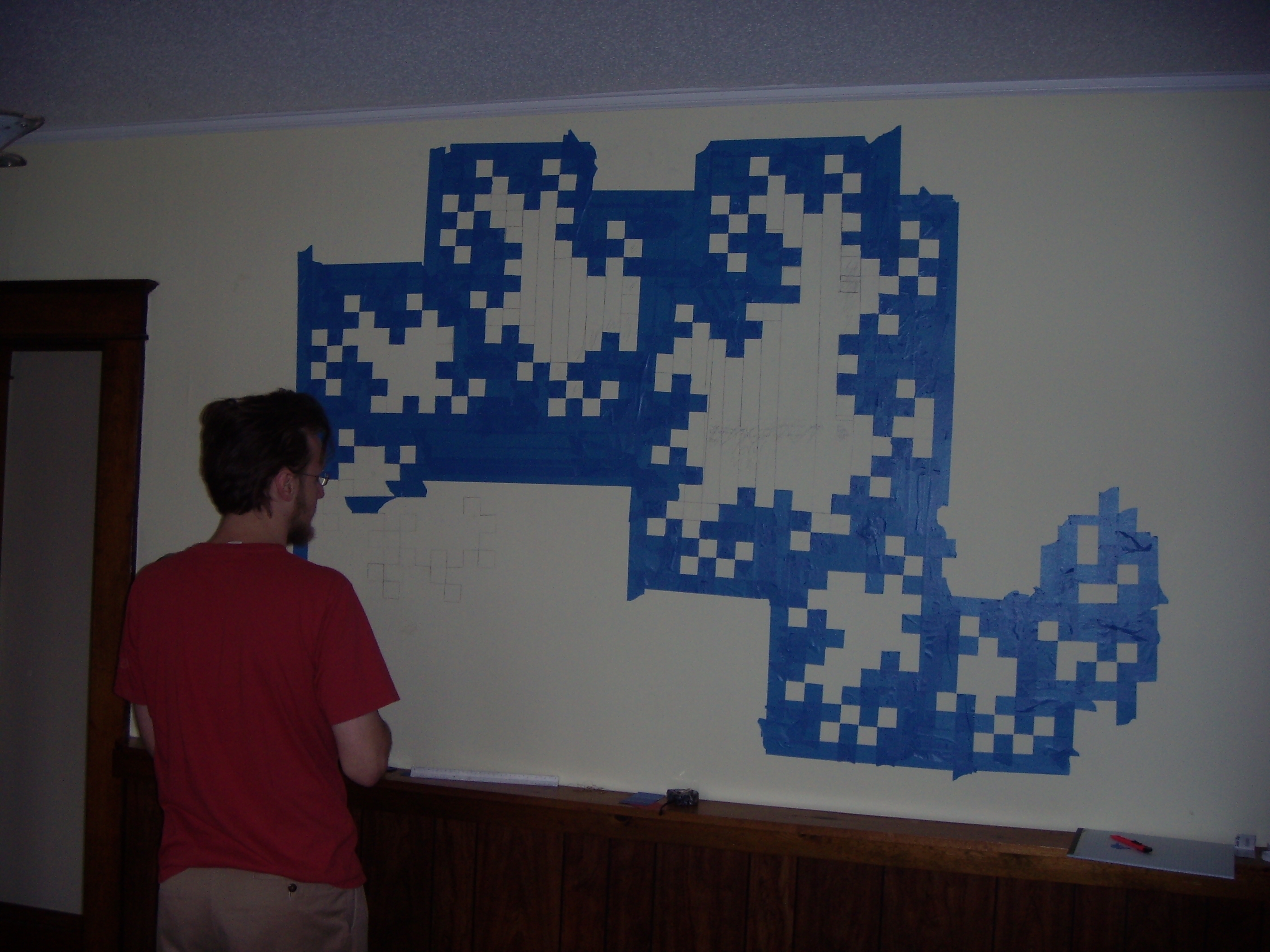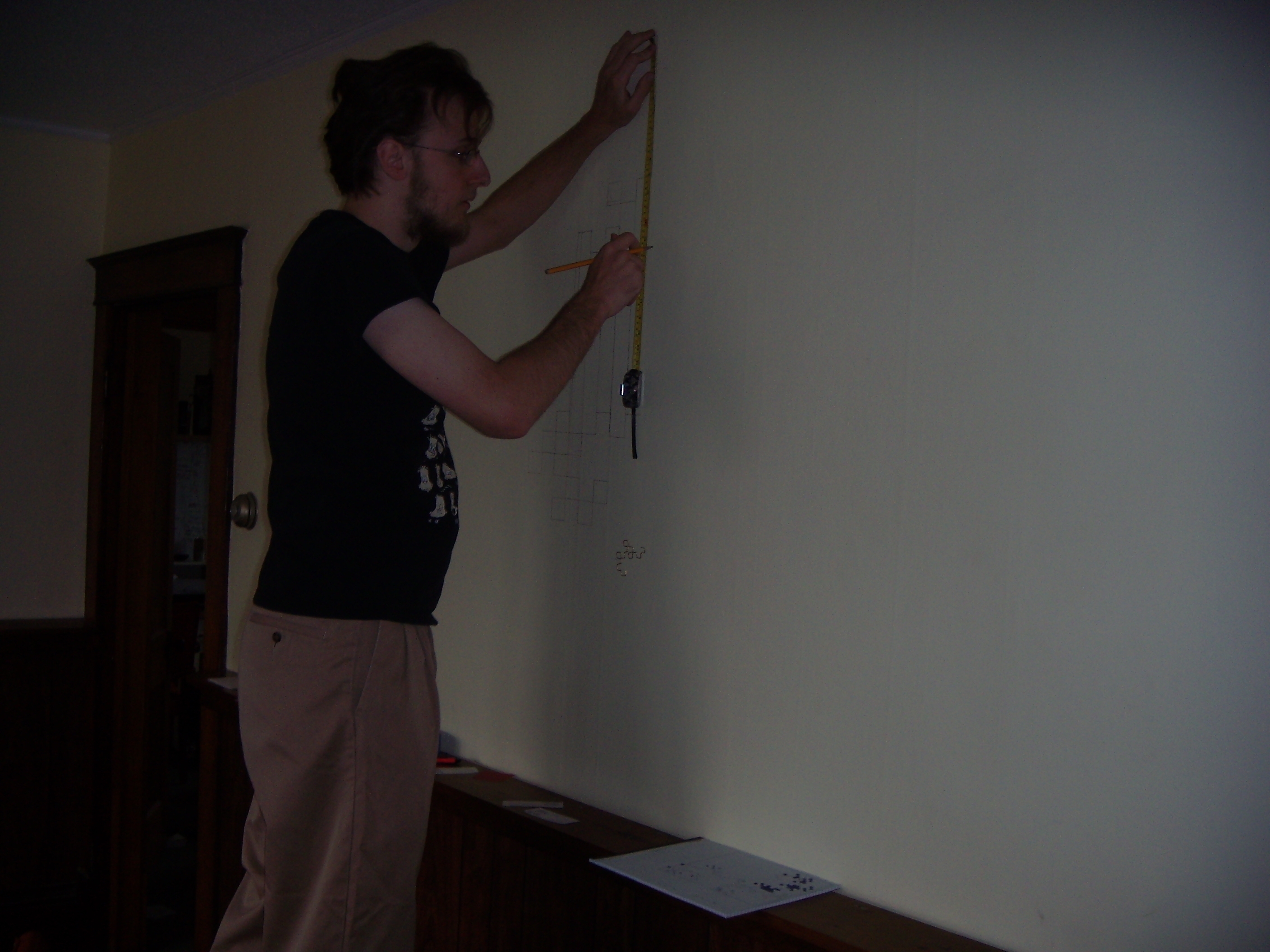 Ah, there we go. So, with that as a guide, we sketched it on the wall. Using an appropriate plumb bob for guidance, of course.