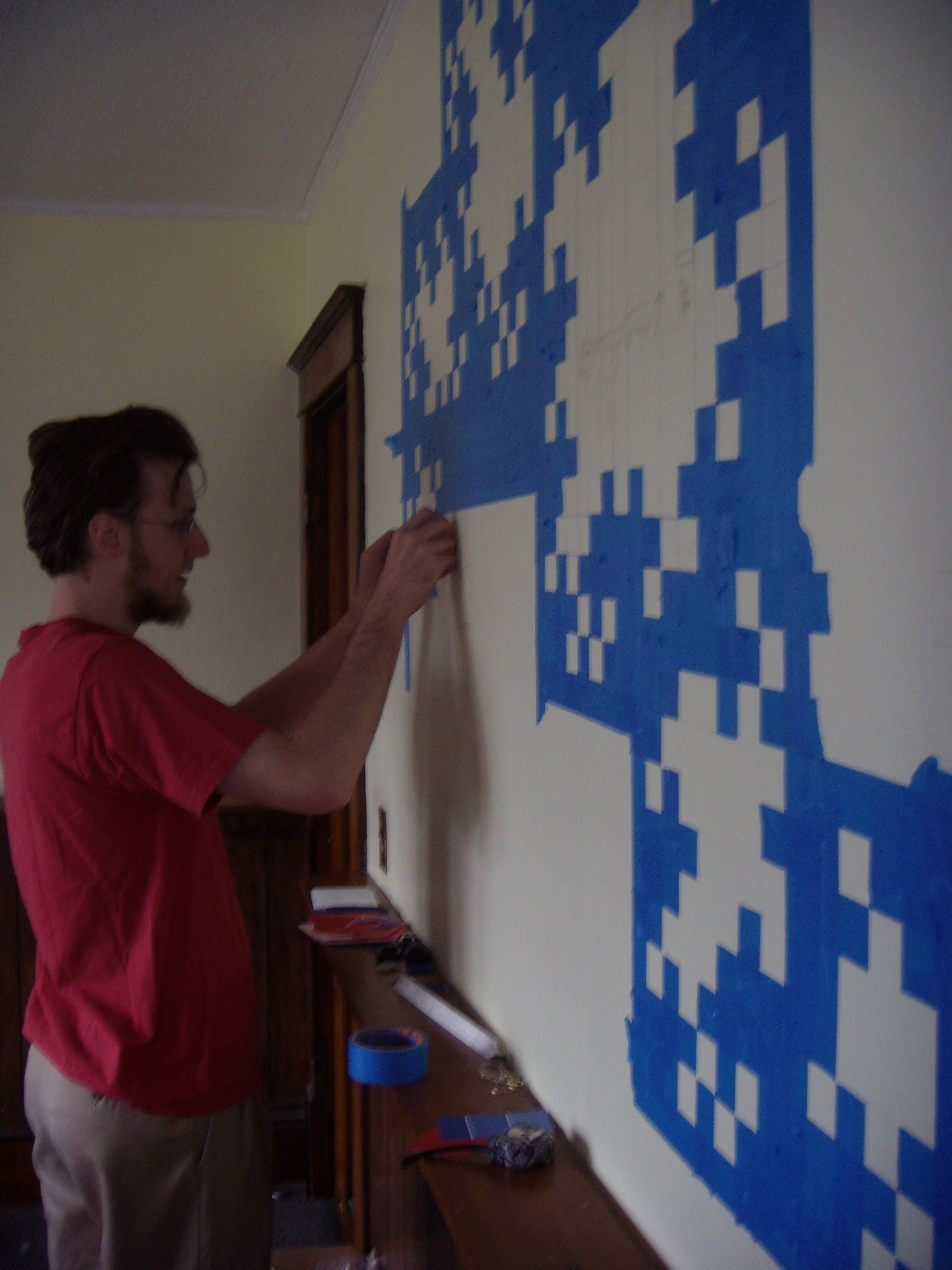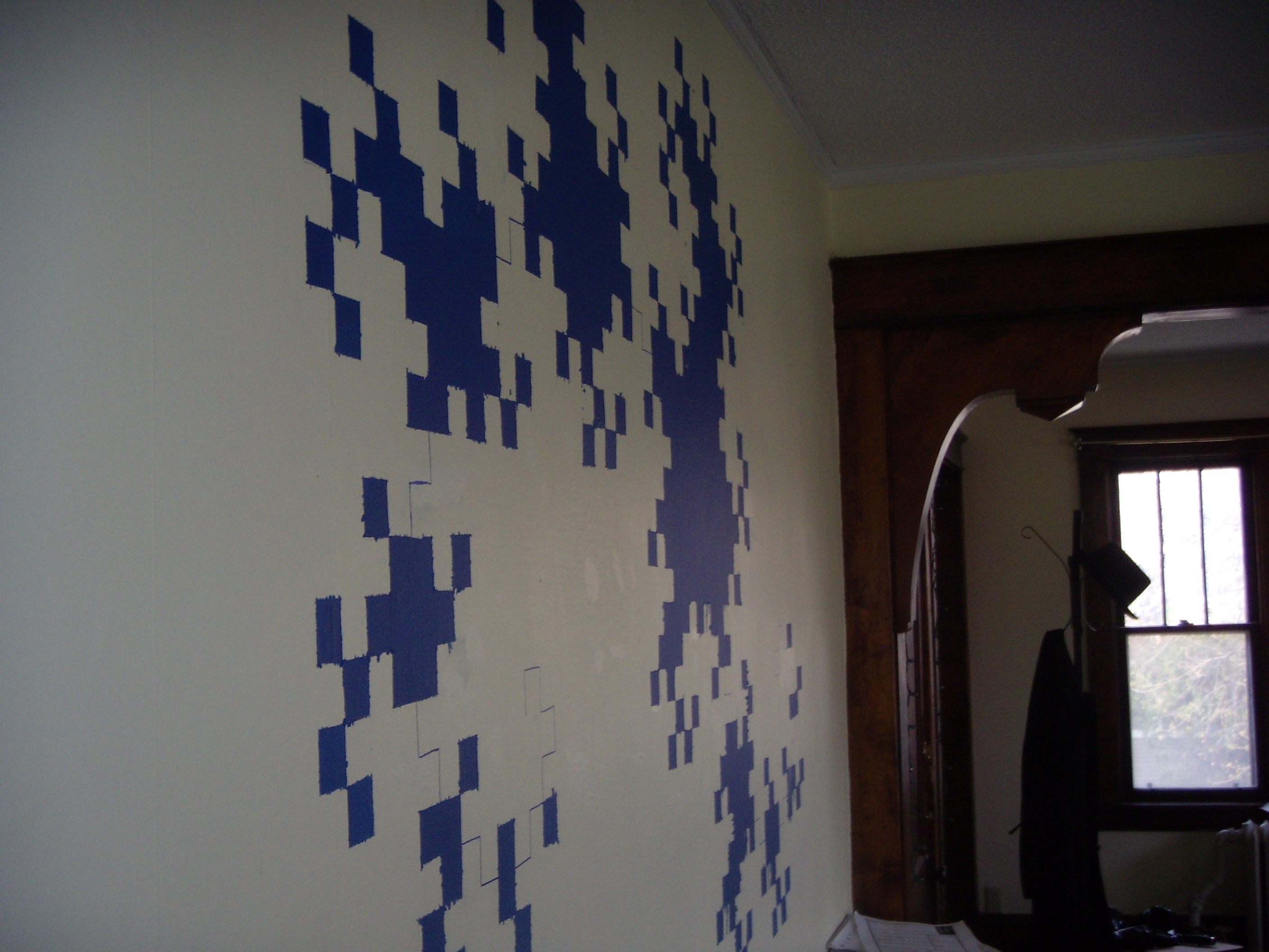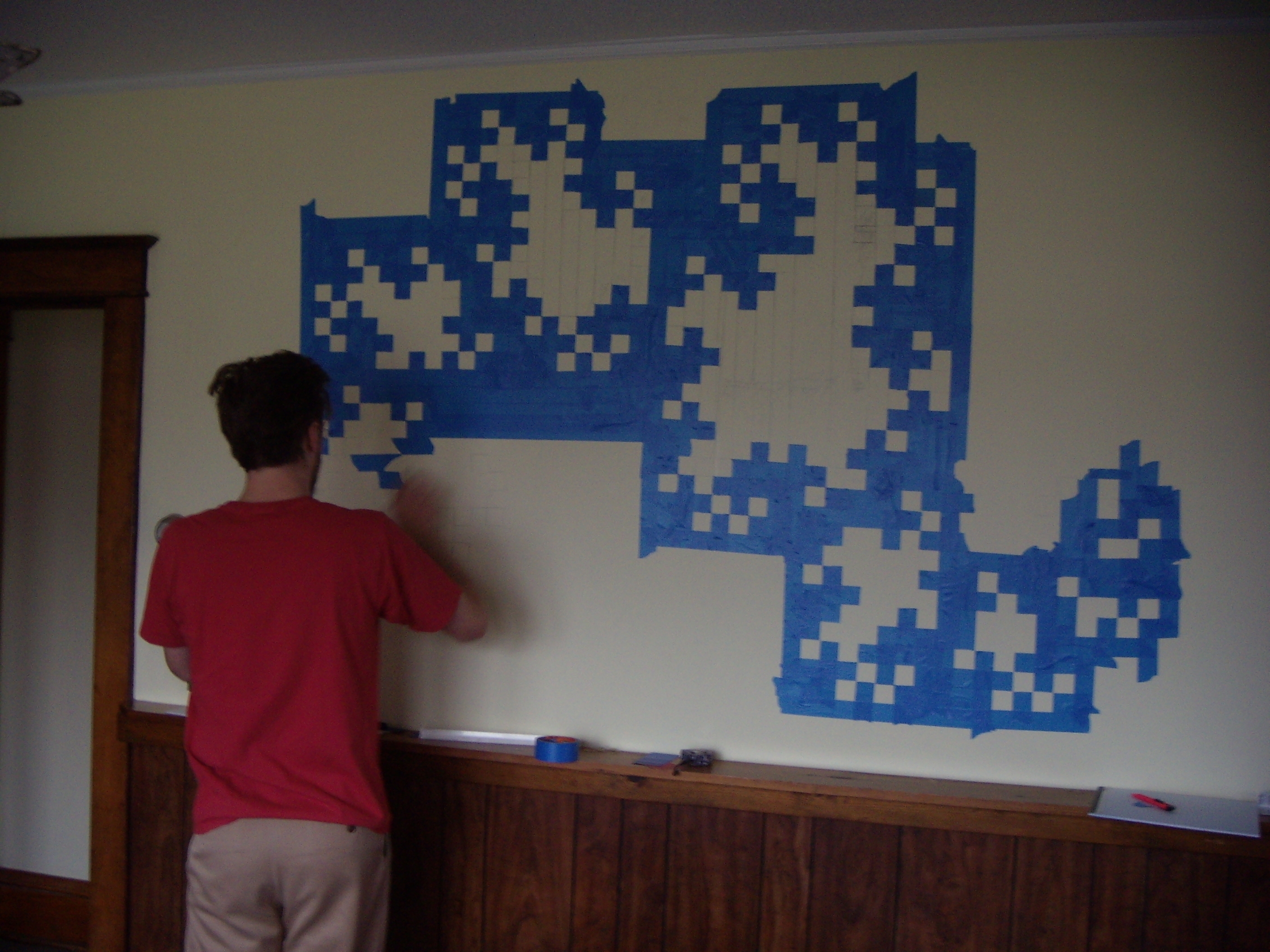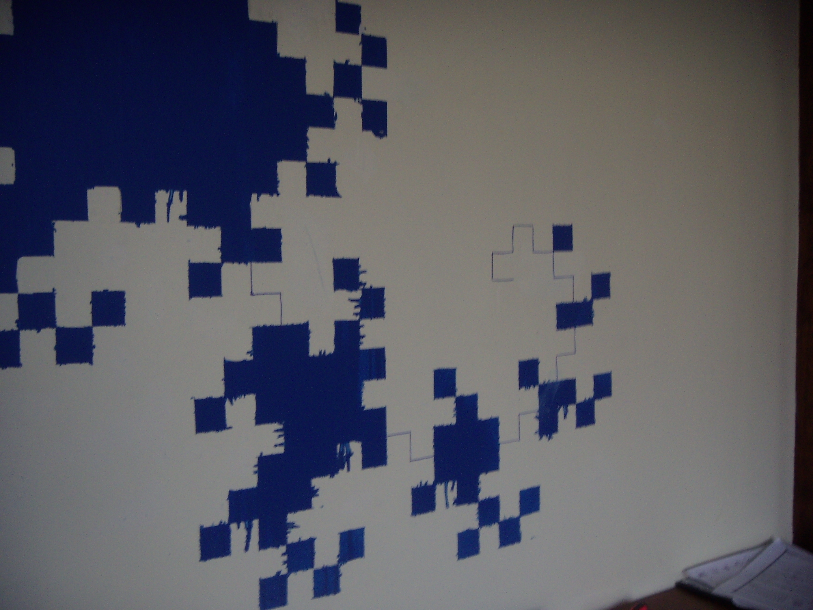 One (1) iteration 10 dragon curve, painted (and touched up with Sharpie) on an apartment wall!