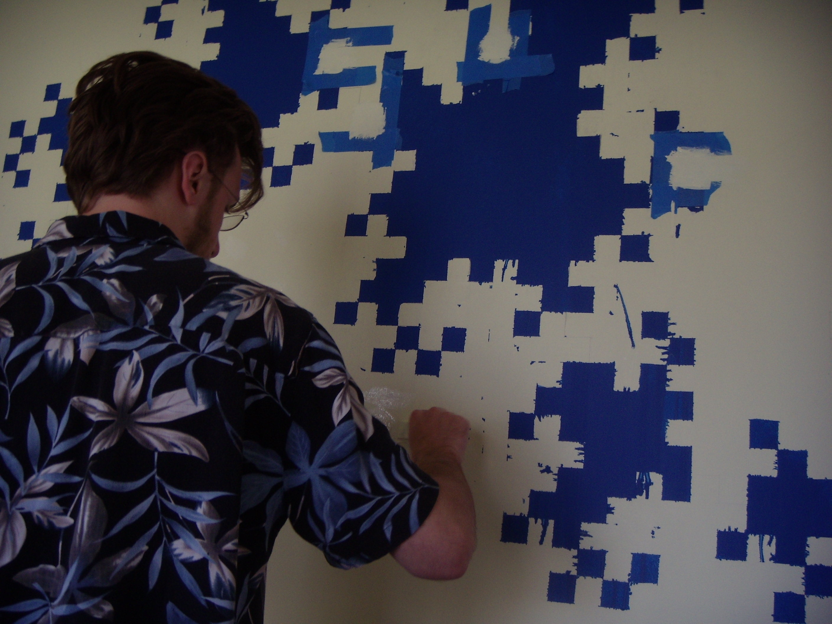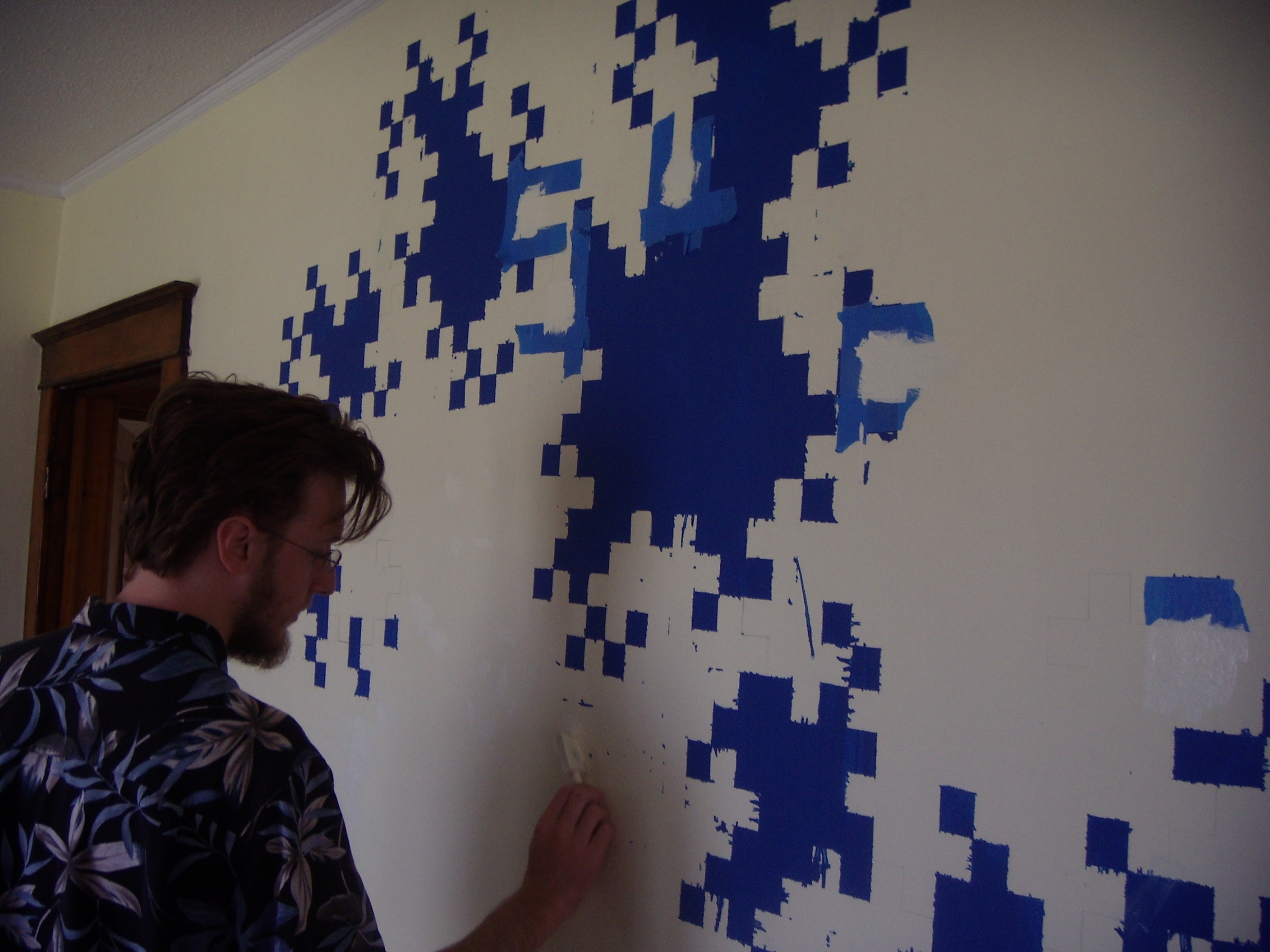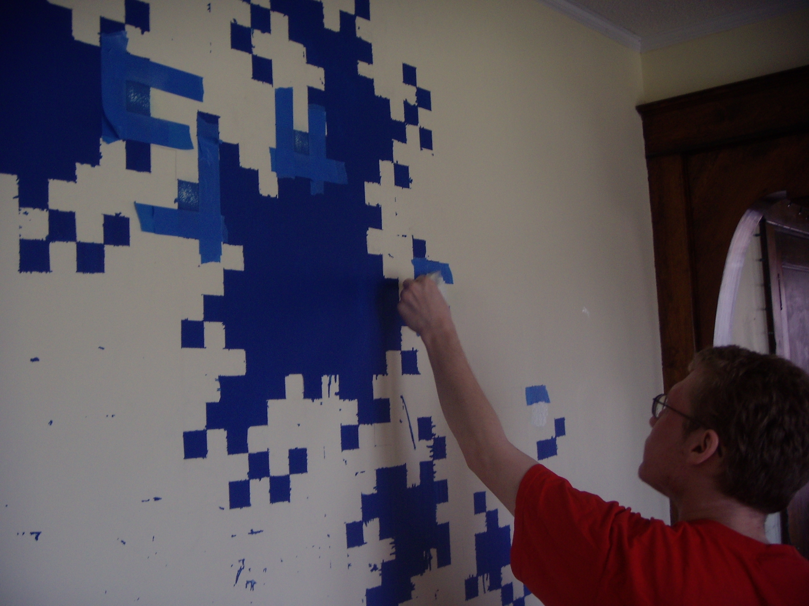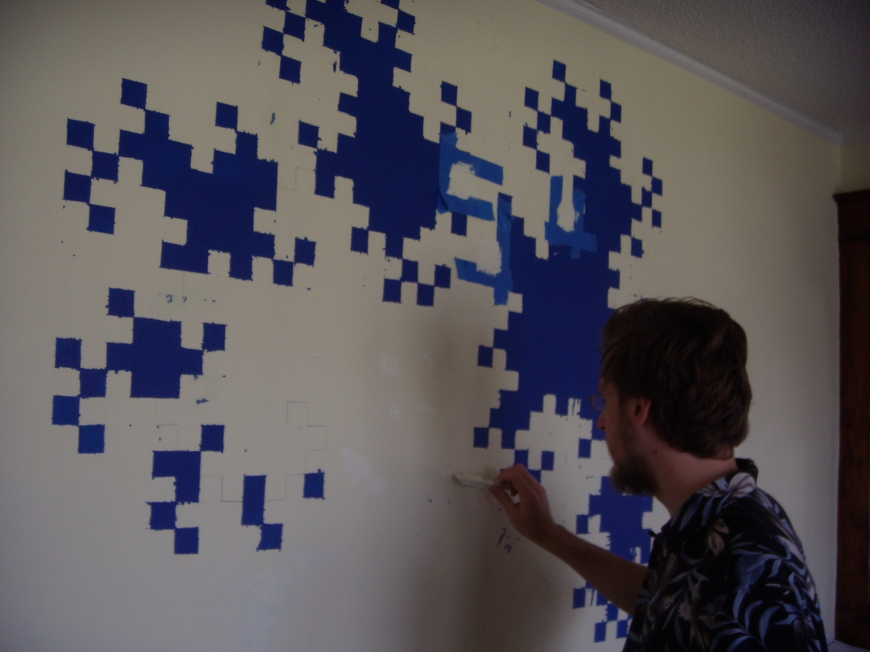 One (1) iteration 10 dragon curve, painted (and touched up with Sharpie) on an apartment wall!
