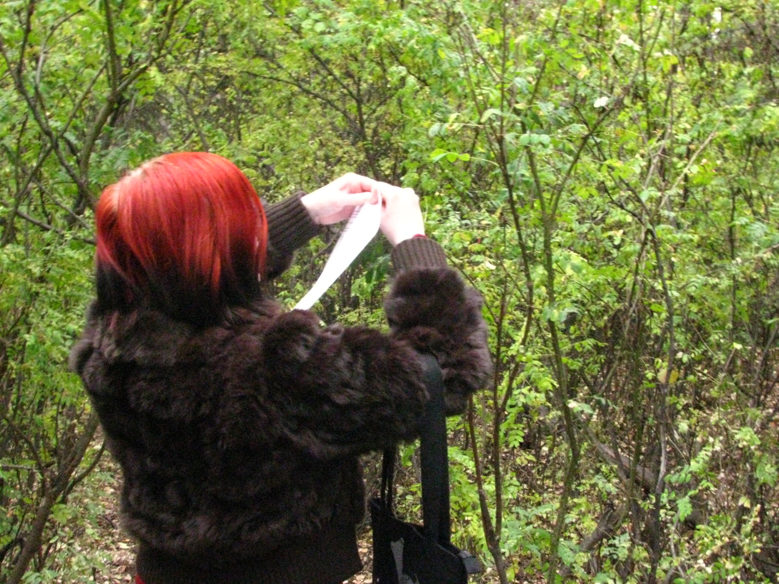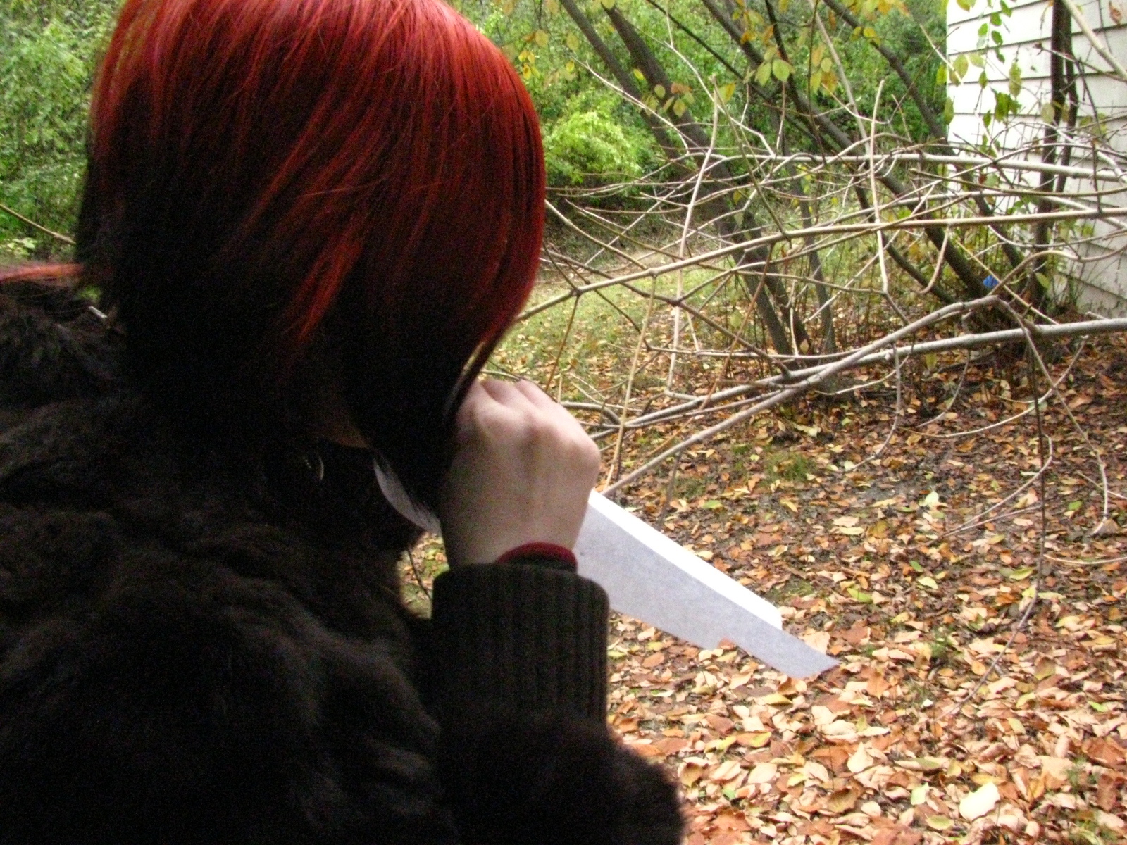 I found it easier to bite a hole in the papers than to stab them with the tree branches. Ghost: she made num sounds while doing it.
