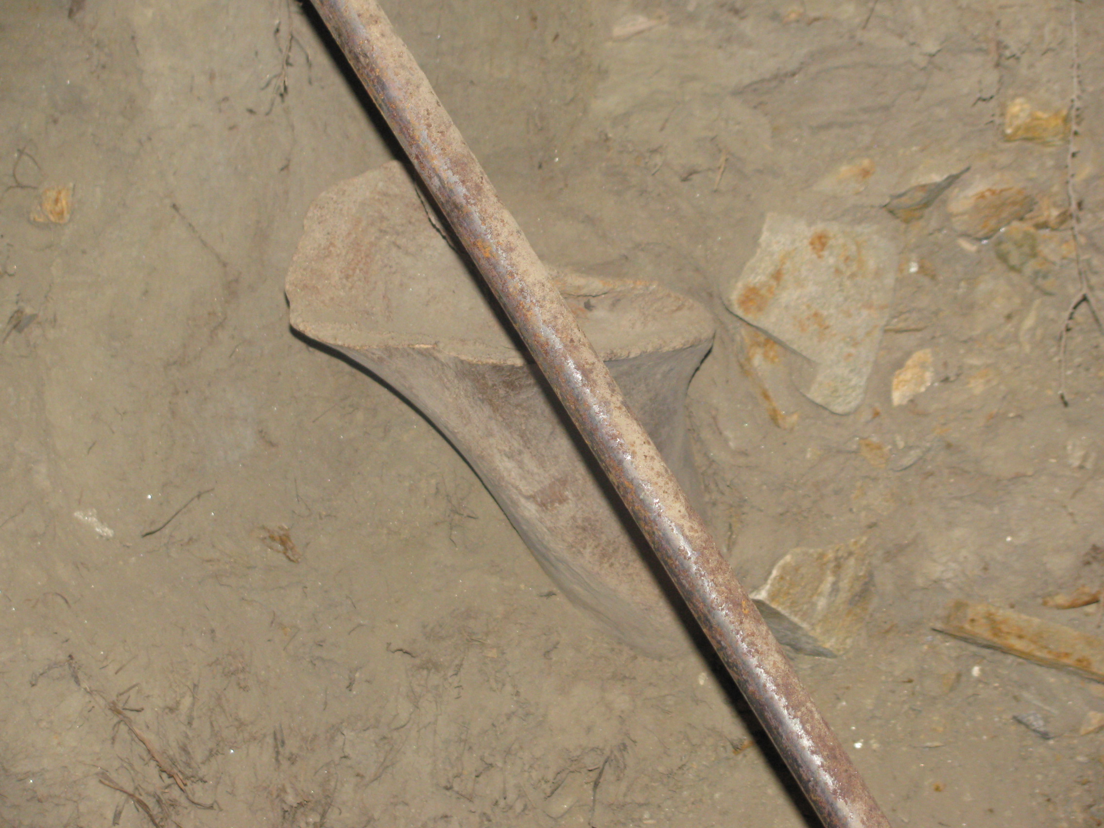 The tunnel was filled with soft silty material called loess. Loess is silt blown by the wind from the Yukon river all the way to Fairbanks. It piles up over millions of years. You can see it on the lens.