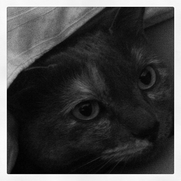 I entered the secret place that my cat, Patches, occupies on a daily basis. Entering this place is quite disruptive to her because she believes no one can find her here. She hides from the rest of the world under the covers of the bed and I entered her place. Sorry Patches.