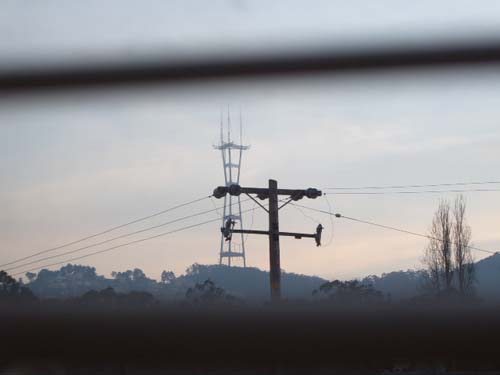 I took two pictures of Sutro Tower. First one from my roof and second one is through my blinds from my room.