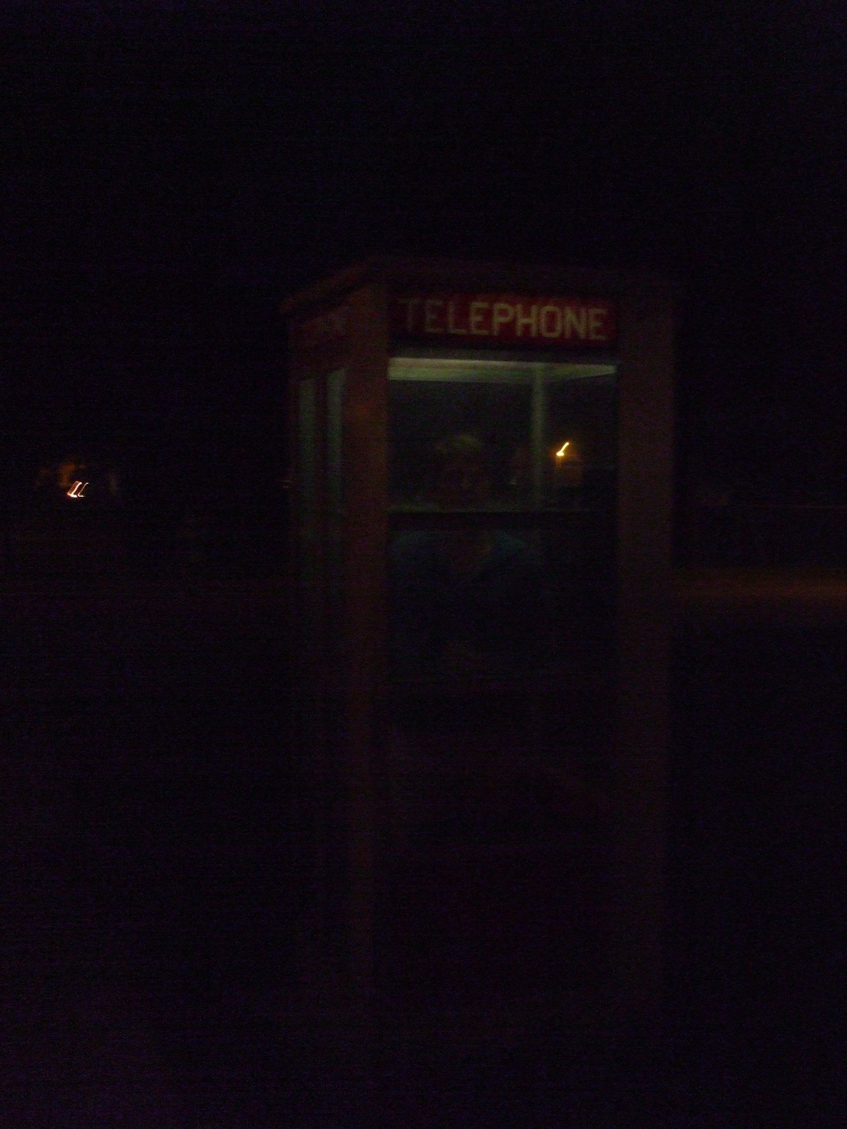 This is the non-functioning phone booth that sits in the middle of Kelley on a corner. The light works but the phone doesn't, go figure. Mary is standing inside trying to make the picture look creepy (seriously, that's what she told me).