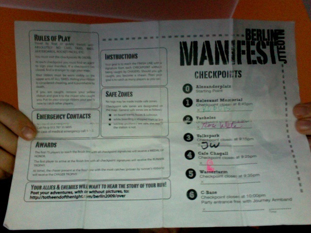 The next checkpoint wasn't as eventful, as the first, the subway ended within a safe-zone. Which I, till then, hadn't realized. I just saw two chasers, but they didn't see me. I got my signature and went on to the Volkspark, by Tram.