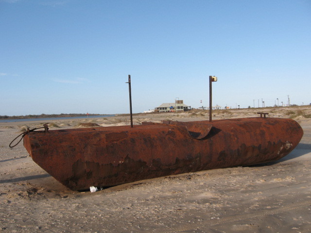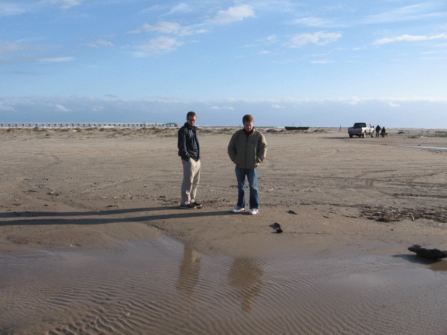January 27th, 2008 11:48 AM / Location: 28.597390,-95.97958How do you get lost in time when you don't have a timeship? Time is all around. One of the best places to observe time at work is at the shore. Matagorda Peninsula is a particularly excellent example. Three of us, with time on our hands and a set of wheels, set out to watch time at work. We had varied histories; John had never been there, PGJ had been there many times, and I had been there once before, an outing in August 2003 remembered for its excellent seashells and the baby crustaceans who sloshed under the edges of my swimsuit when I jumped in the Gulf, and itched like blazes against my skin. (And I was already itching from having shelled fresh-off-the-boat shrimp without gloves the night before: I don't get along with chitin.)