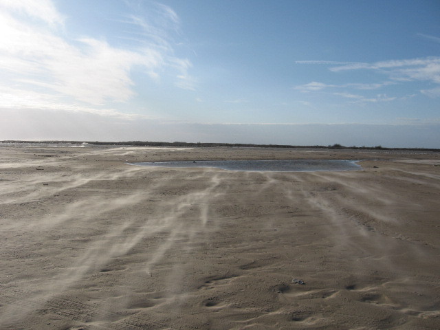 None of my photographs captured it well, but it was gusty. We were watching the just barely perceptible procession of sand down the shoreline. It was a little more apparent than usual, today.